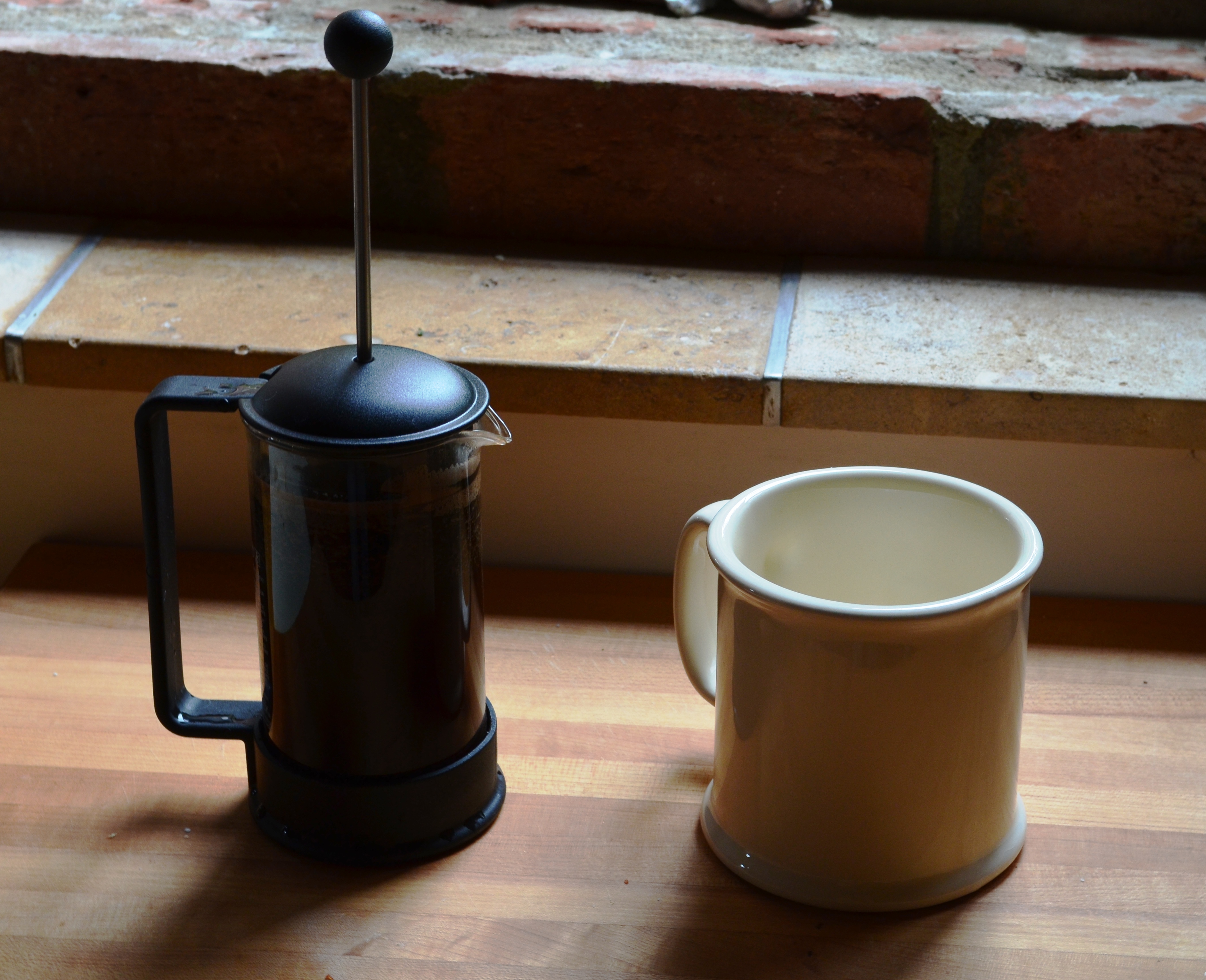 Now, thanks to Anne, I’m doing the French press method of coffee brewing. This is how coffee was meant to be made. What would life have been if my first cup had been a French press, not stuff from a giant metal container? I might have torn that roof off!