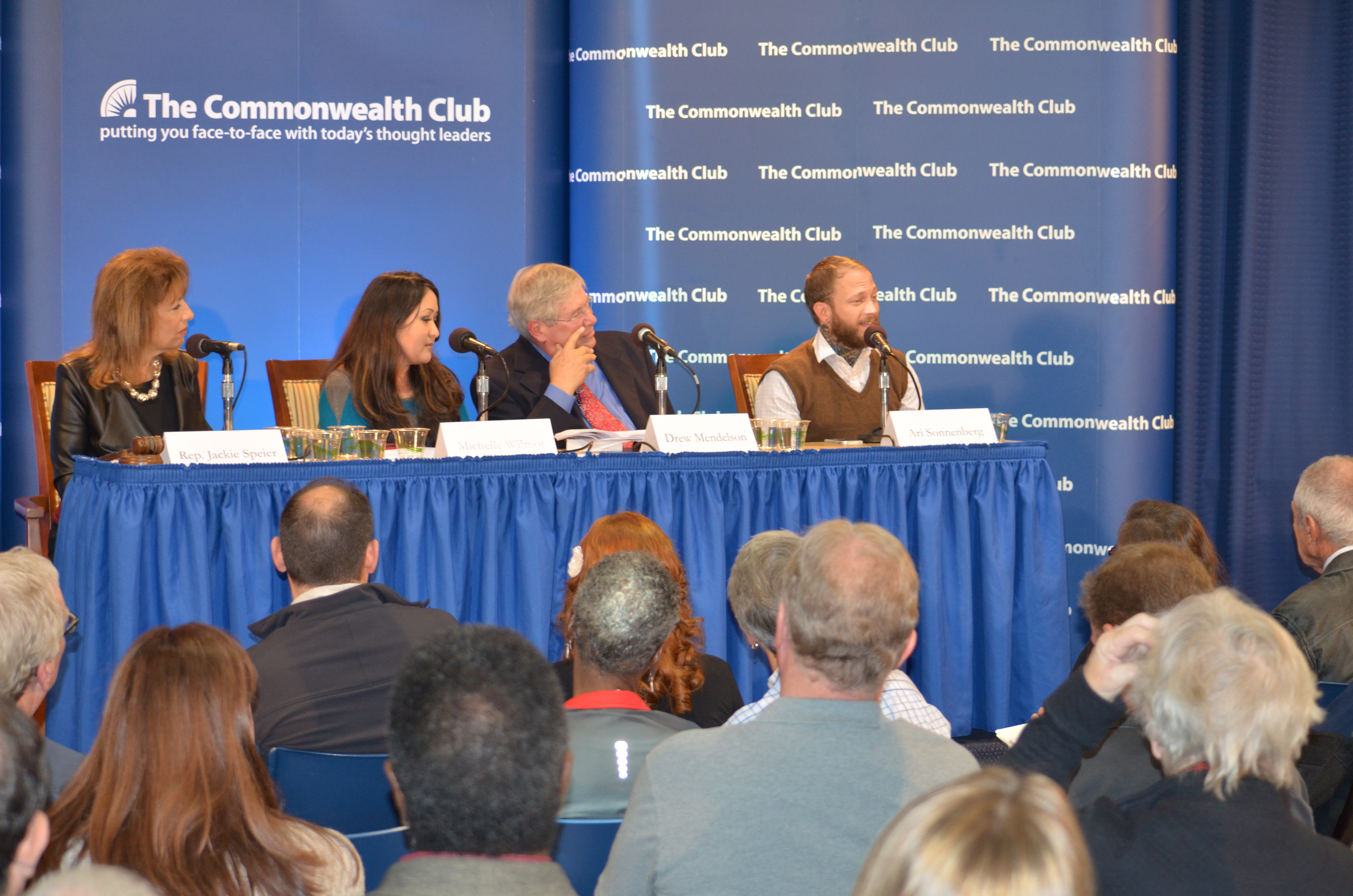Over one hundred people gathered at the San Francisco Commonwealth Club today to listen to three combat vets describe their battle experiences and the challenges they faced after coming home. With Congresswoman Jackie Speier, a member of the House Armed Services Committee, as the moderator, the one-hour talk drew an enthusiastic response from the audience.