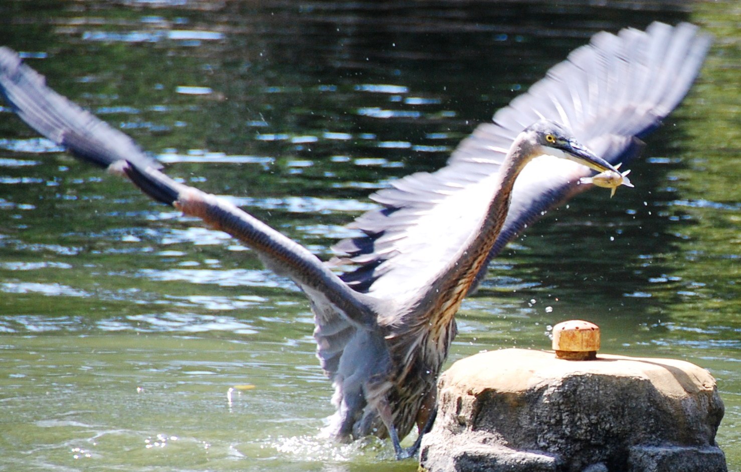 What struck me about this blue heron was the intensity of its eyes, riveted on its underwater target. The successful dive took place in a pond at a public park where children played nearby, oblivious to the “survival of the fittest.”