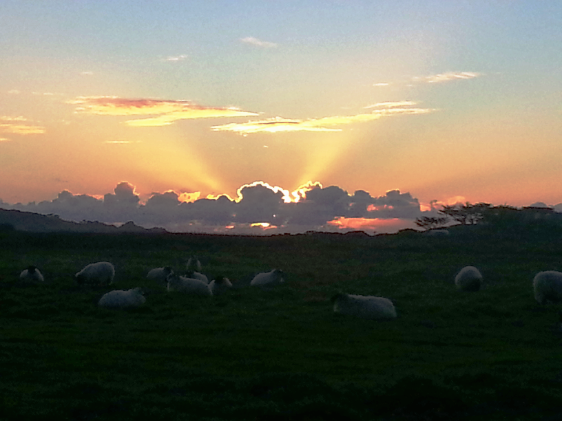 This photo of sheep at sunset could be manipulated so the sheep were more visible in the low light, but this is how I saw them, barely noticeable. The sheep are part of Clint Eastwood’s Mission Ranch in Carmel.