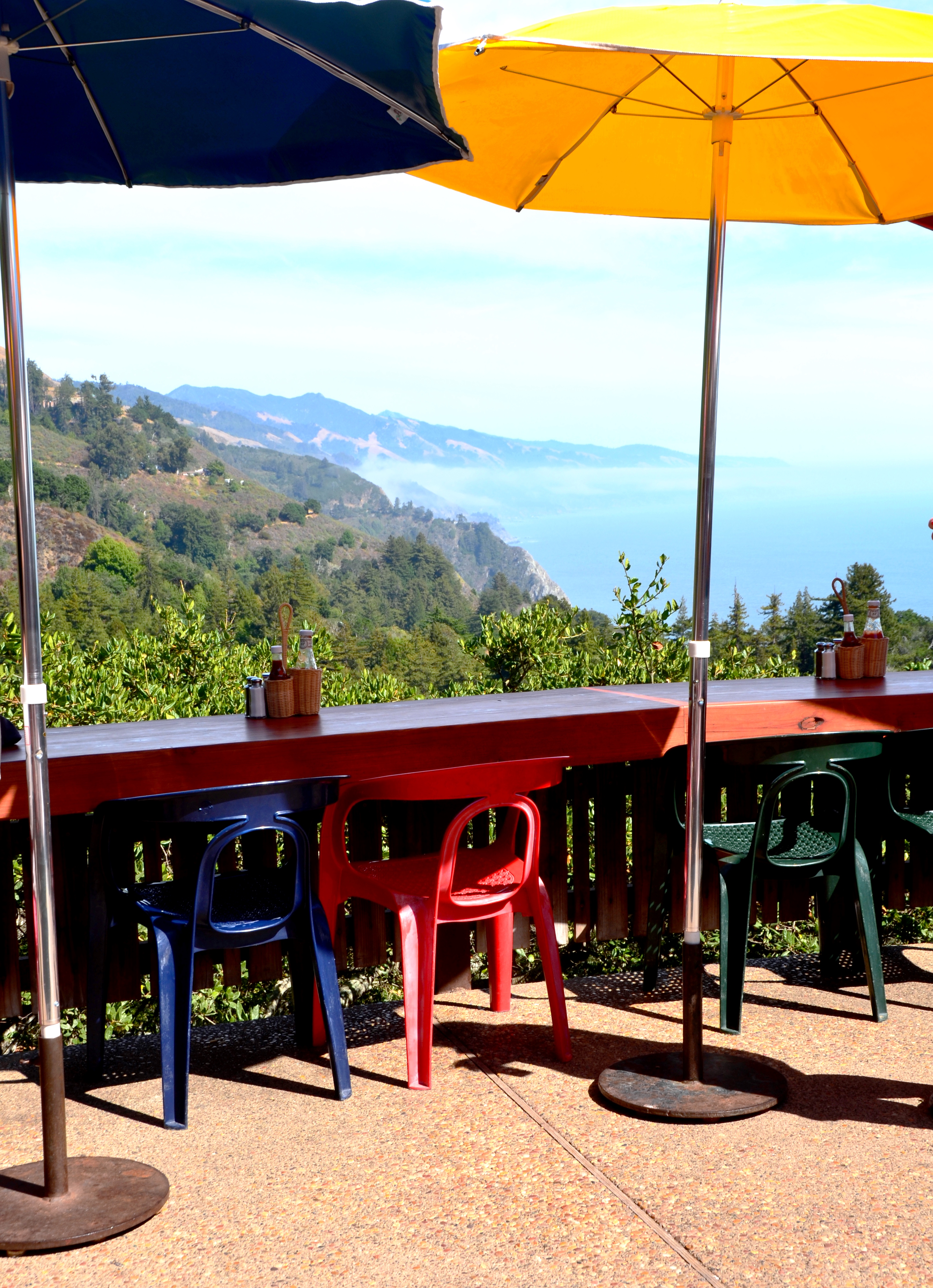 Nepenthe is a restaurant with the greatest view in the world, so claim a few travel writers. Opened in 1949, this eatery overlooks the Pacific Ocean from a cliff on California’s Big Sur. I ate there last week and for a very brief moment, there were three unoccupied “rail” seats in front of me.Tourists wait hours for these kind of seats.