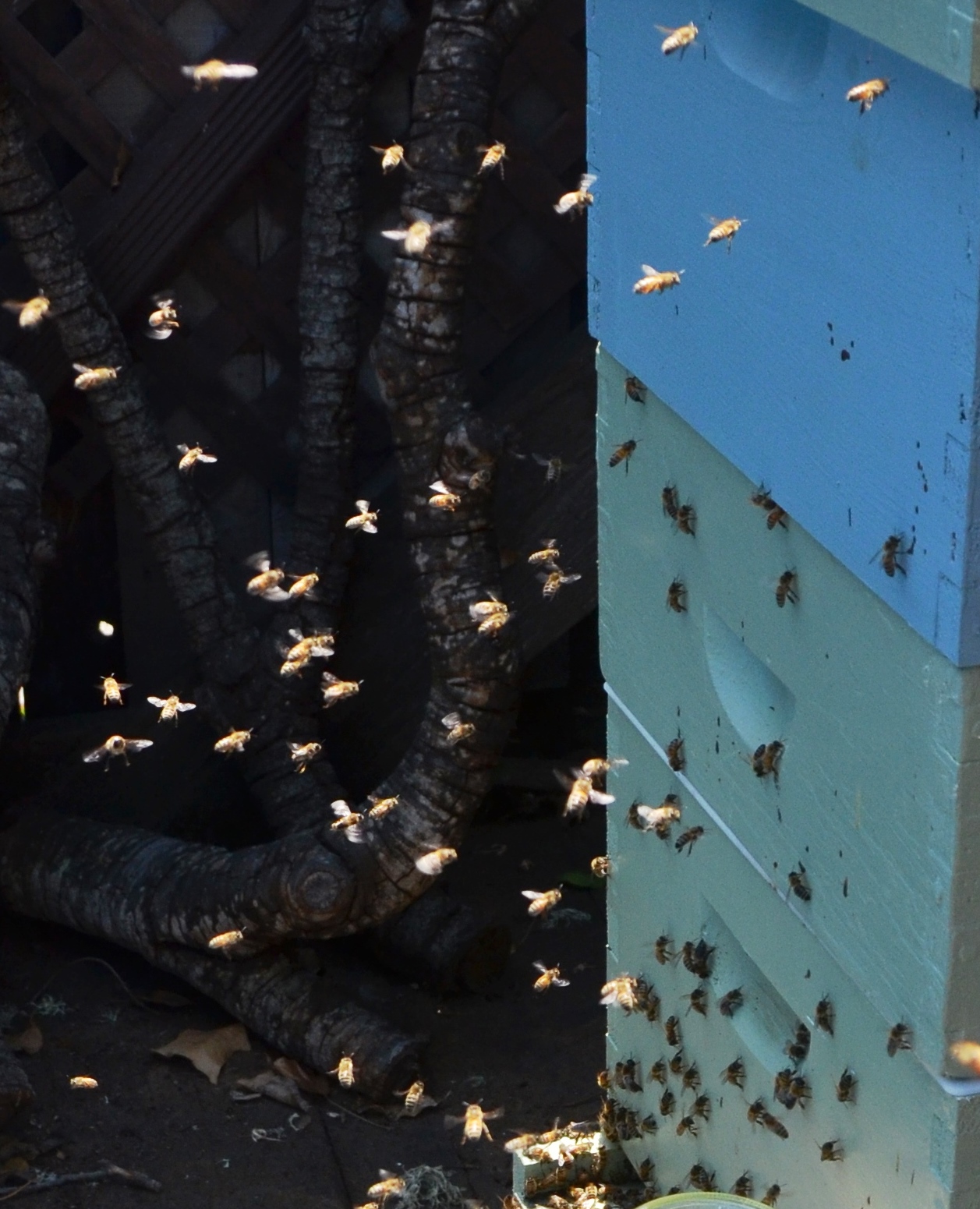 The zigzag in my life these days are my honey bees. I took this shot of the hive yesterday late morning. Some of the bees are leaving to forage, others have landed full of nectar to deposit on frames in the hive. Busy. Crowded. Going every which way.