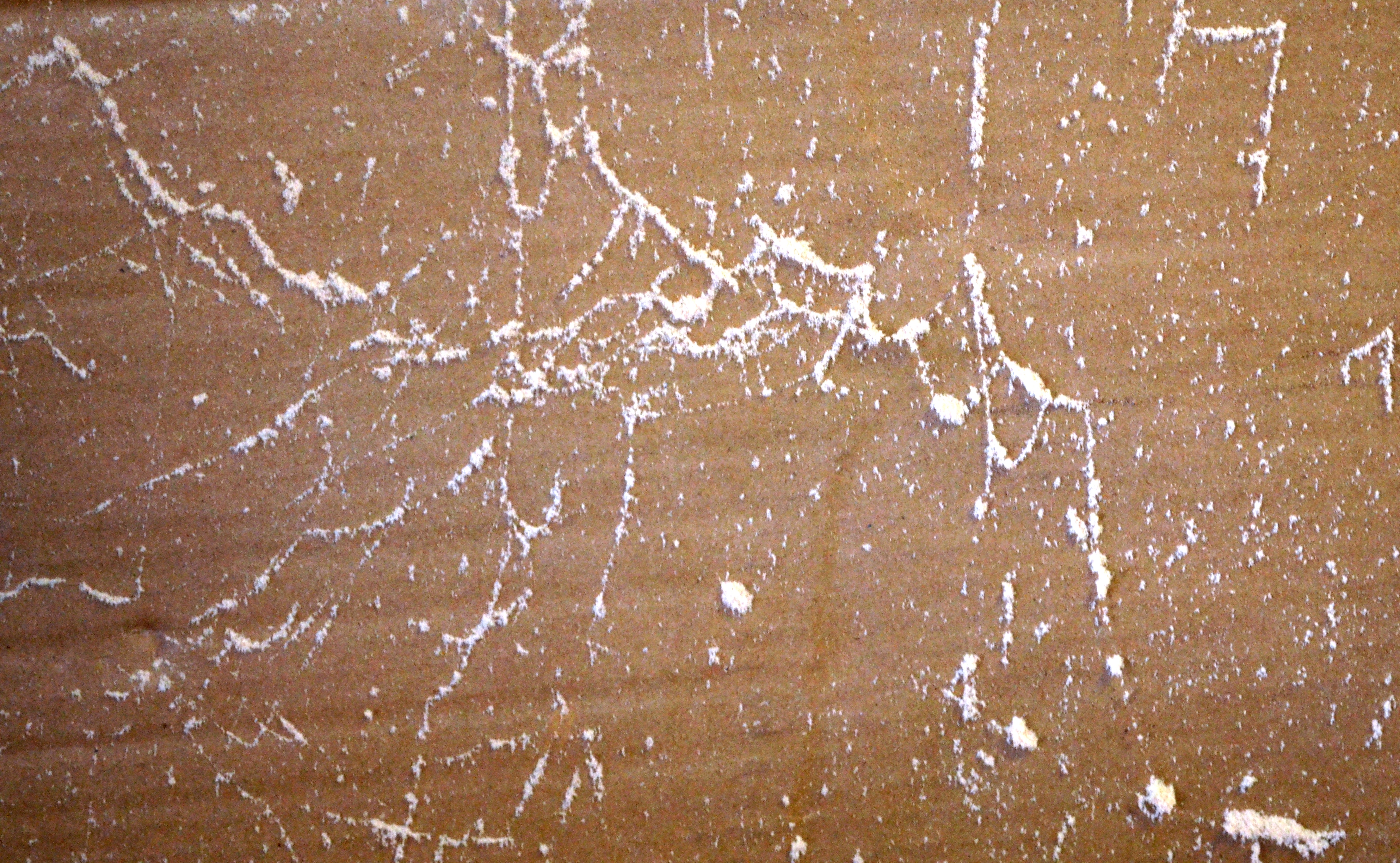 Art is a very broad term. Today I was using a table saw to cut through a large piece of wood. The sawdust blew out onto a flat piece of cardboard, leaving a random pattern on it that I think qualifies as “art.” Let’s argue the point. Is it art if someone buys it? Actually, I don’t want to labor this point. I grew up knowing I couldn’t draw well. My best bet was always randomness: throwing paint on paper, tilting watercolors so they run all which ways, and unintentional acts like sawing wood.