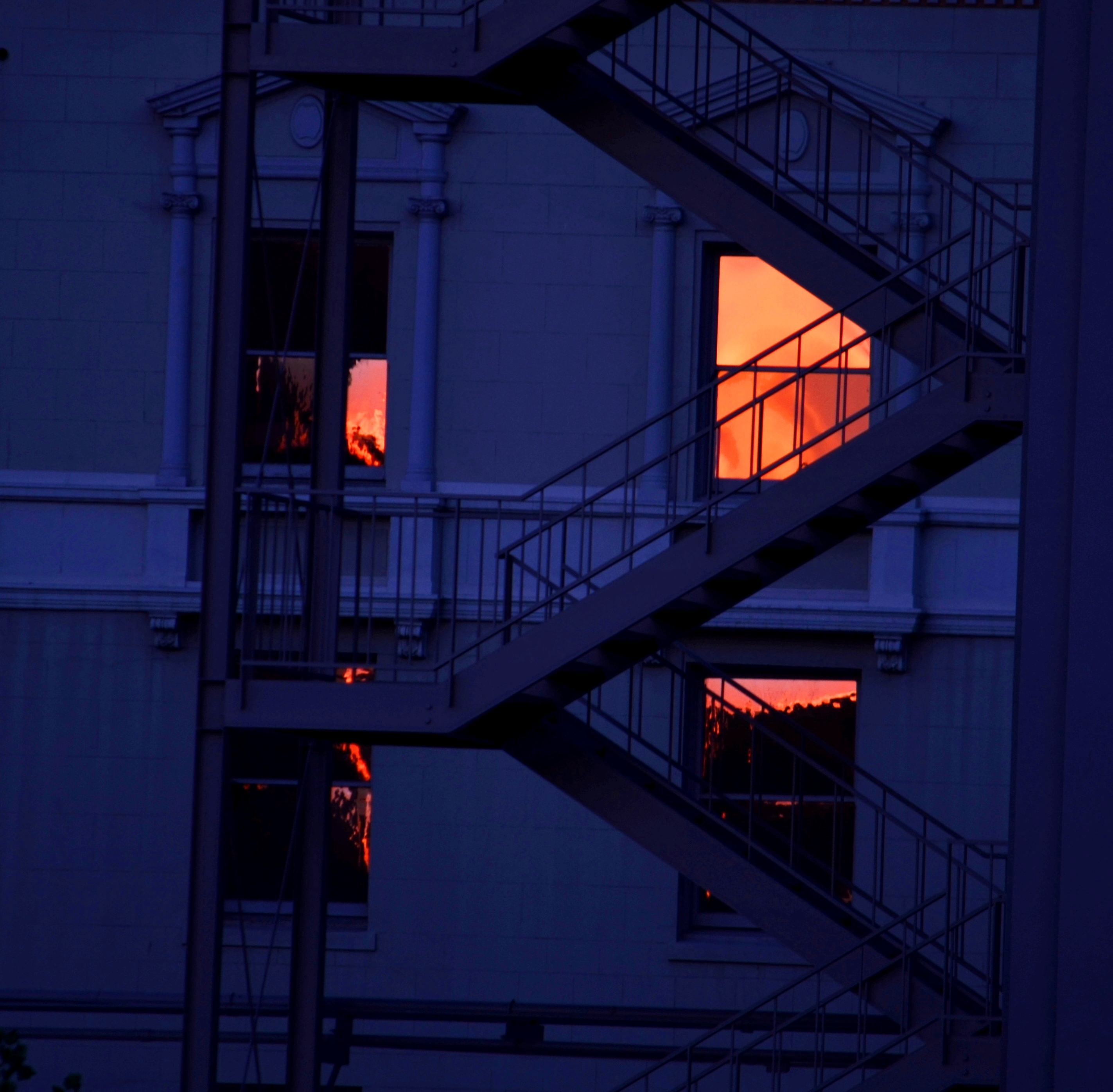 This old office building in downtown Sacramento appears to be on fire, but it’s only a reflection of the sunset that creates the illusion of flames.