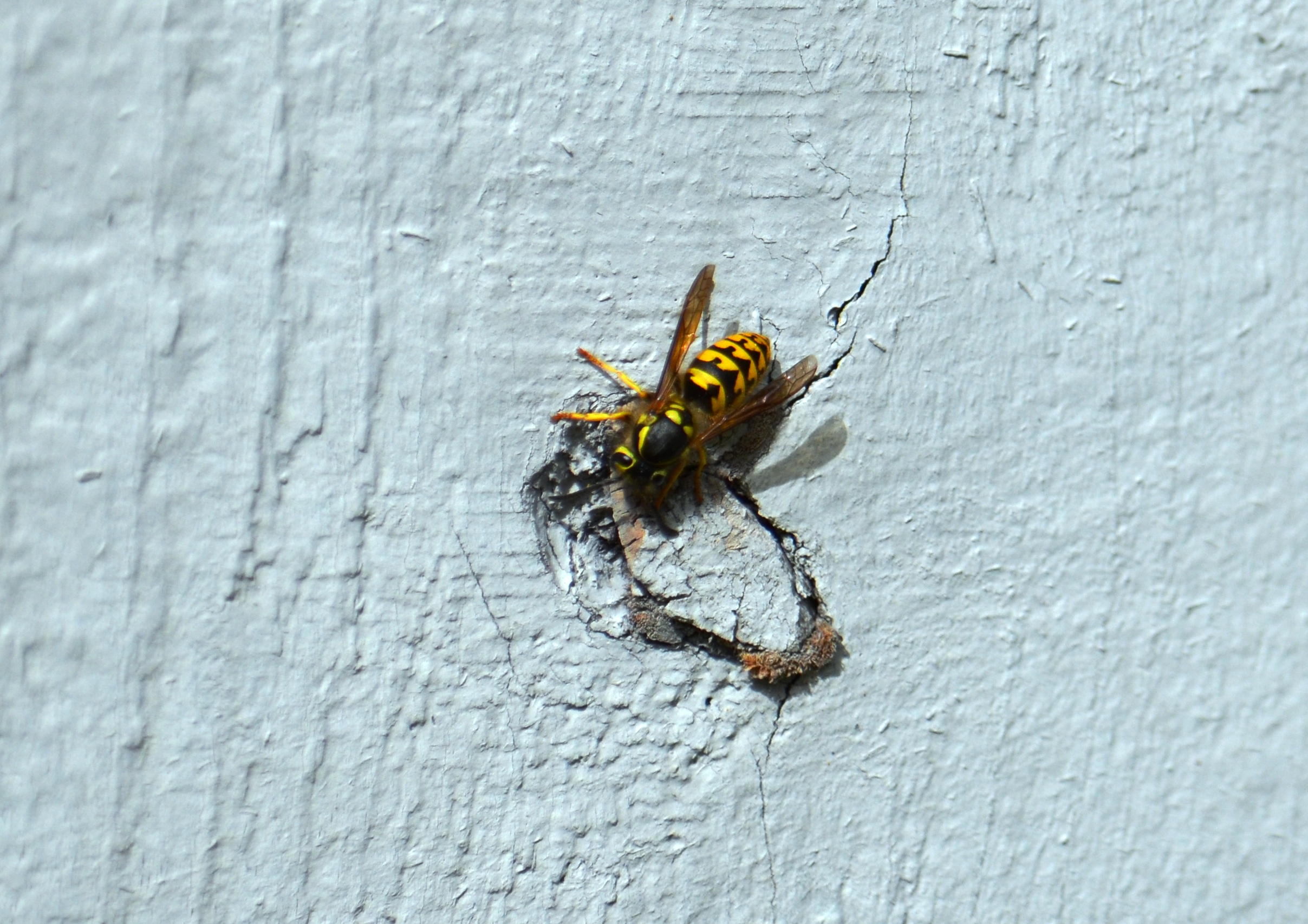 In my honey bee crazy backyard I sometimes see a yellow jacket. I like how they look on our old fence, but that is as far as it goes.