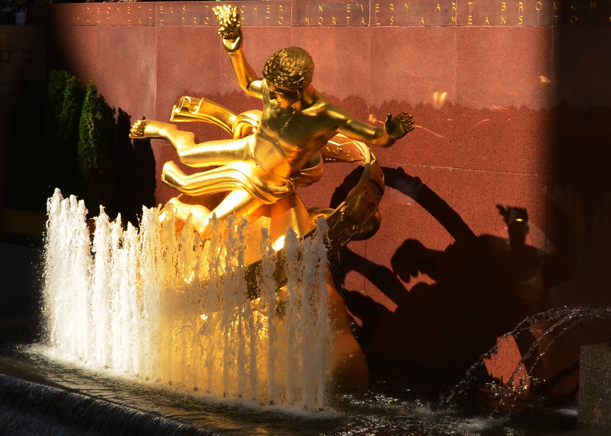 I’m thinking of a crime novel set in Rockefeller Center, Manhattan. You’ve got “gold for greed” and “shadows for evil.” Took this shot yesterday afternoon.