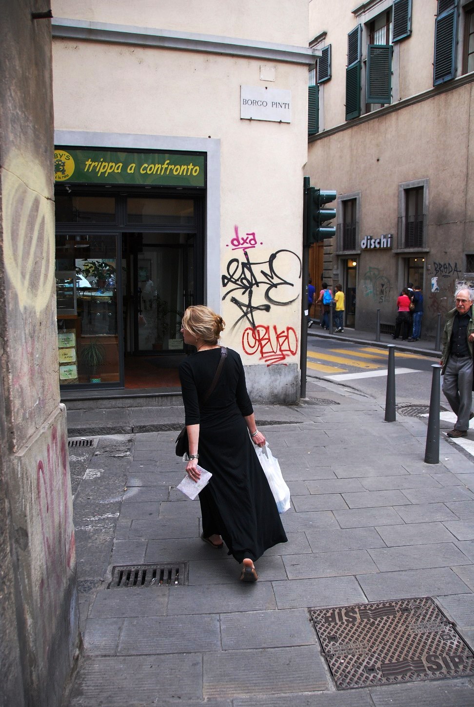 It helps that I know the subject, Anne. I love the movement—she’s walking with perfect posture and a purpose—turning left—while being noticed by a man entering the picture. The graffiti jumps out, crying for attention. Most of all I am reminded of the drawing of Miss Clavel in the famous children’s story, Madeline: the flow of the nun’s habit as she turns the corner “in the middle of the night” to see what’s wrong in the boarding school. This year marks the 75th anniversary of the publication of Madeline set in Paris. Of course, Anne lived in Paris at one time. The photo was taken in Firenze.