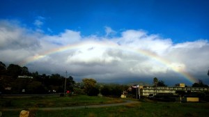 Full rainbow over Highway One, Carmel after rain ends.