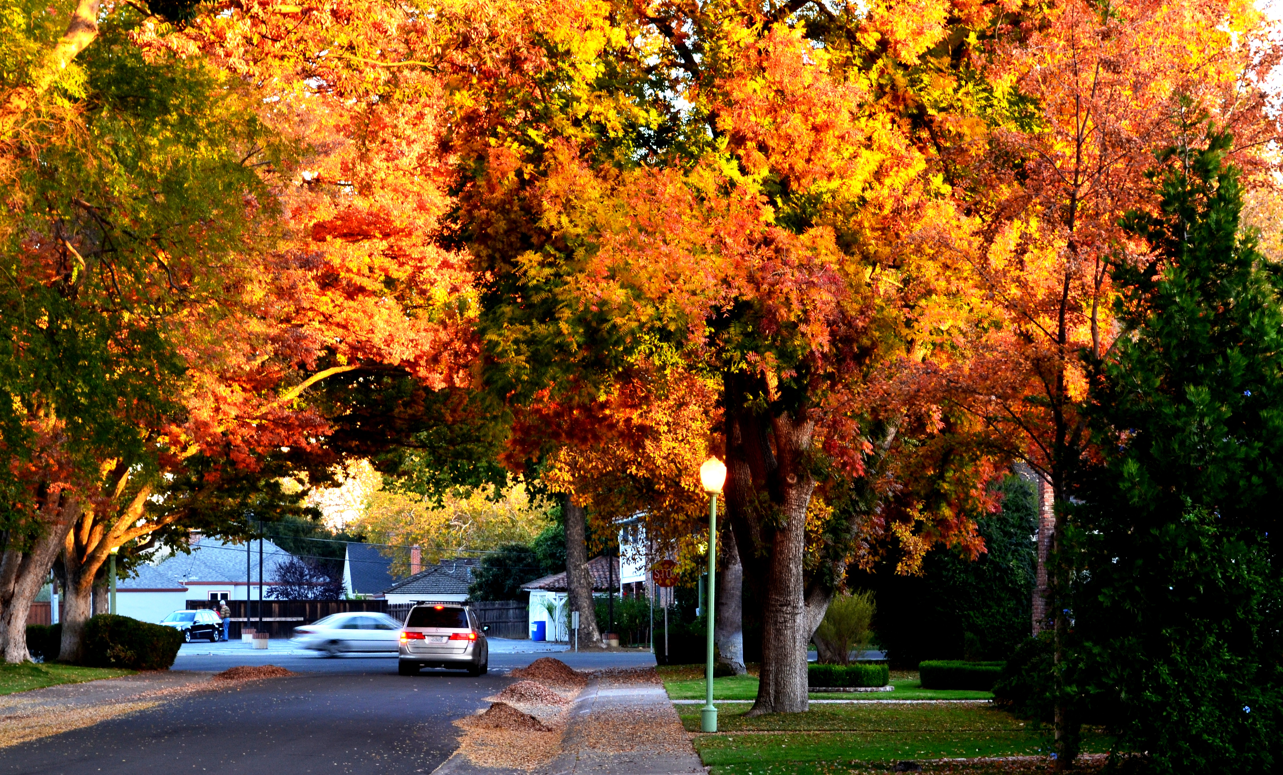 This photo is for forgotten moments like a stroll down the street. Some people never see these moments because they’re on the cell phone, or daydreaming, or pondering a problem. Where is the car at the stop sign going and why is the other car speeding? And who raked those leaves? Hey, how about some silent applause for the changing of colors? Frankly, I’d forgotten that I took this photo.