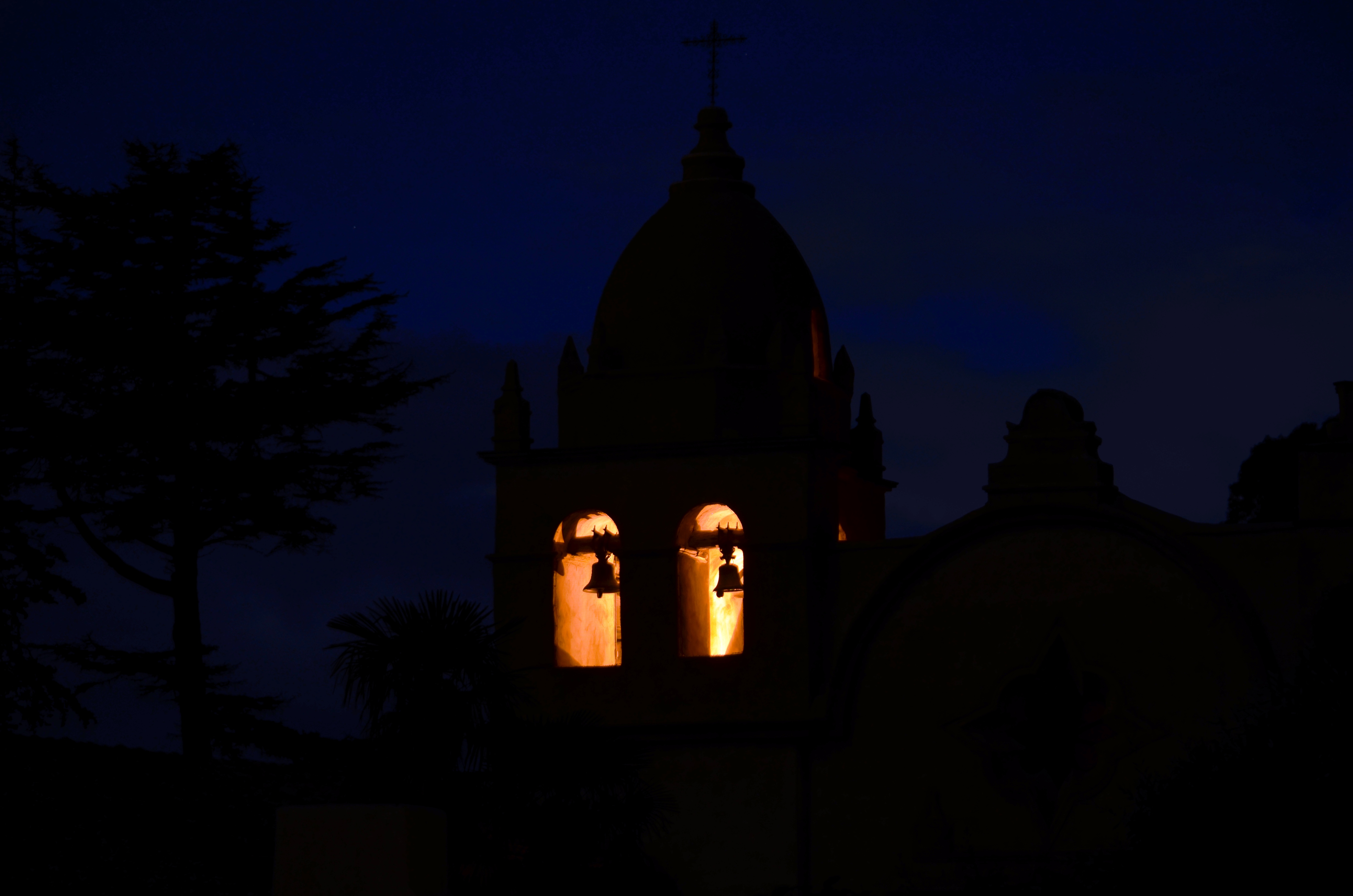 Last night I went out to photograph the moon about seven hours before its full status; translated, I didn’t want to do this at 3 a.m. I set my tripod up in the parking lot of the Carmel Mission, one of California’s historic 21 missions.