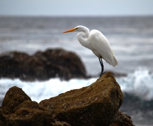 I don’t interact with egrets much, but this week there was great white that went back and forth with me. I was walking along the Carmel Bay when I saw it close to shore. This type of bird always looks “intense” to me whereas the pelican, for example, appears as though it’s about to laugh