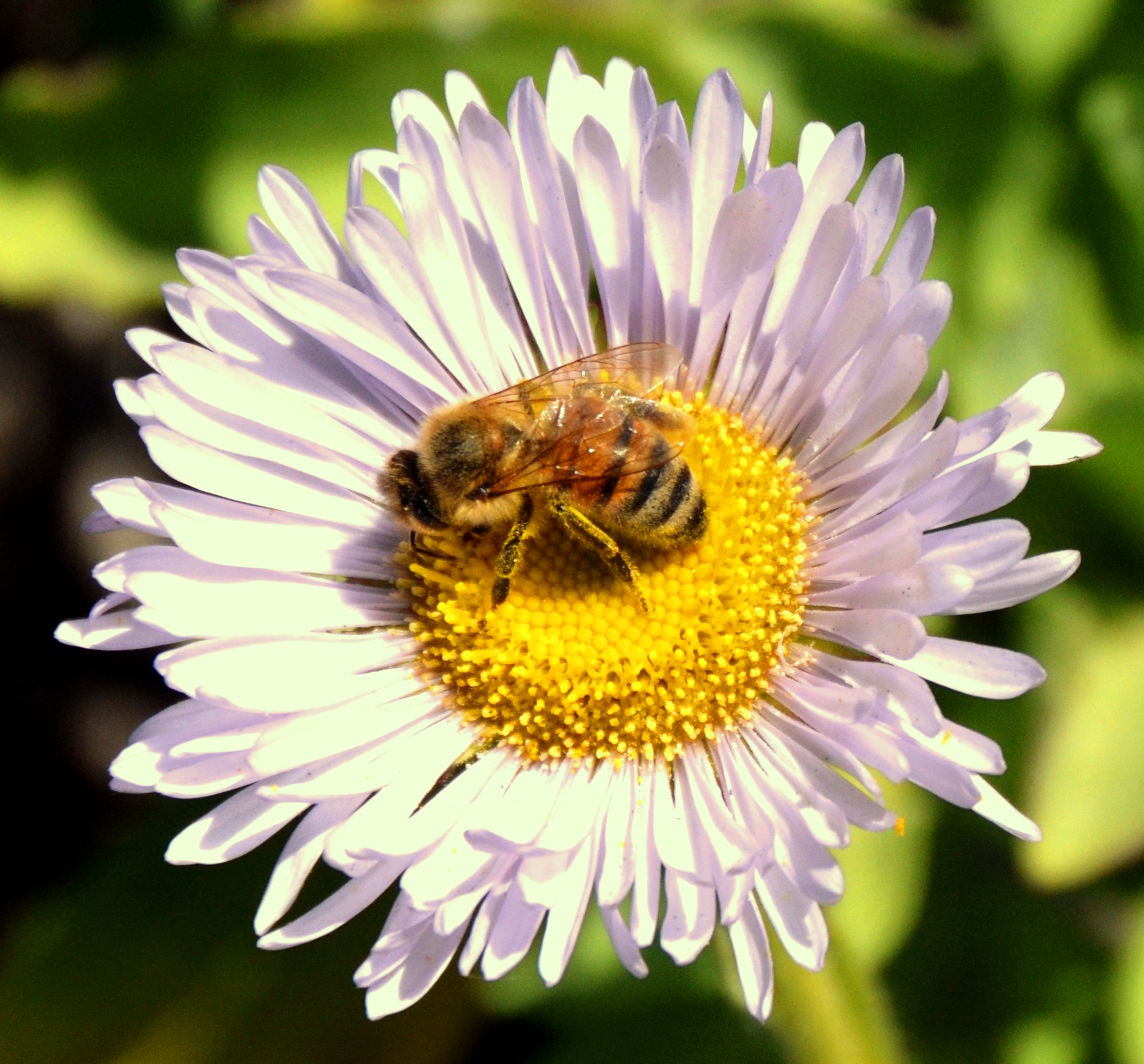As a beekeeper I think of my bees when thinking “yellow,” but when their colors are contrasted with the yellow of a flower, it is clear that they are amber and black.
