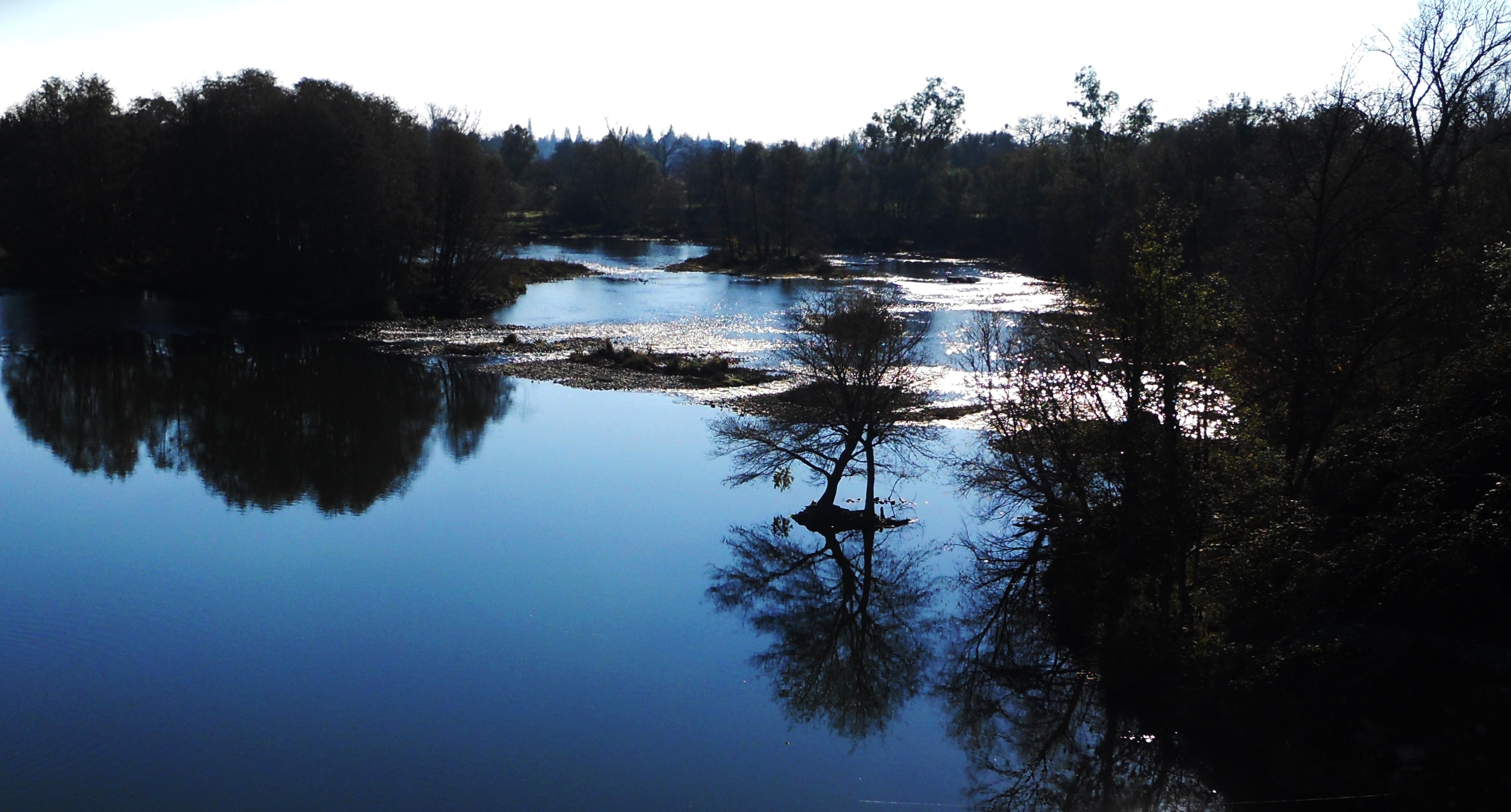 The swollen waters of the American River as seen yesterday from the bike trail near Sacramento.