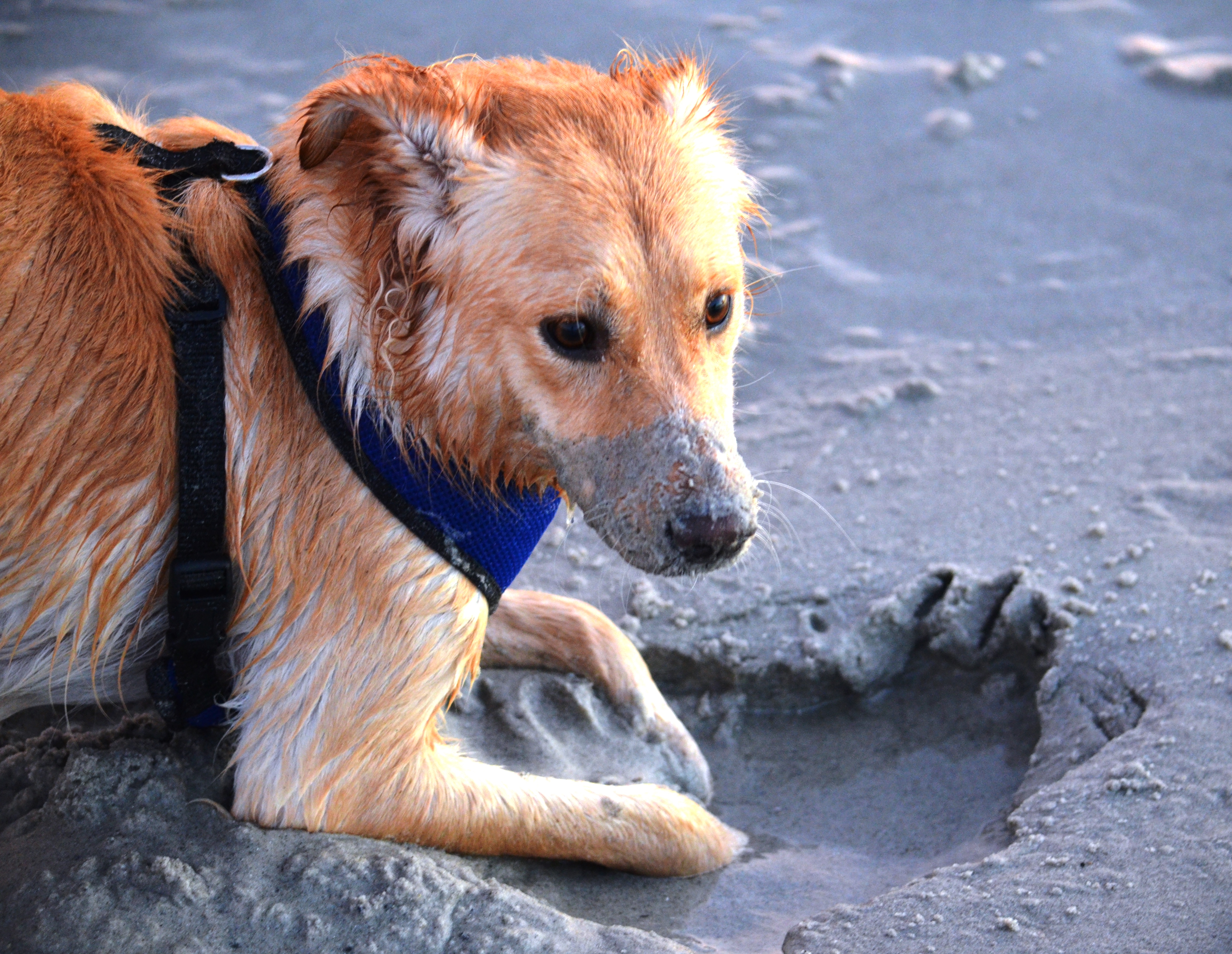 Puppies are “Express Yourself.” Here Molly realizes the futility of digging a hole in the sand, or is she wondering what’s next?