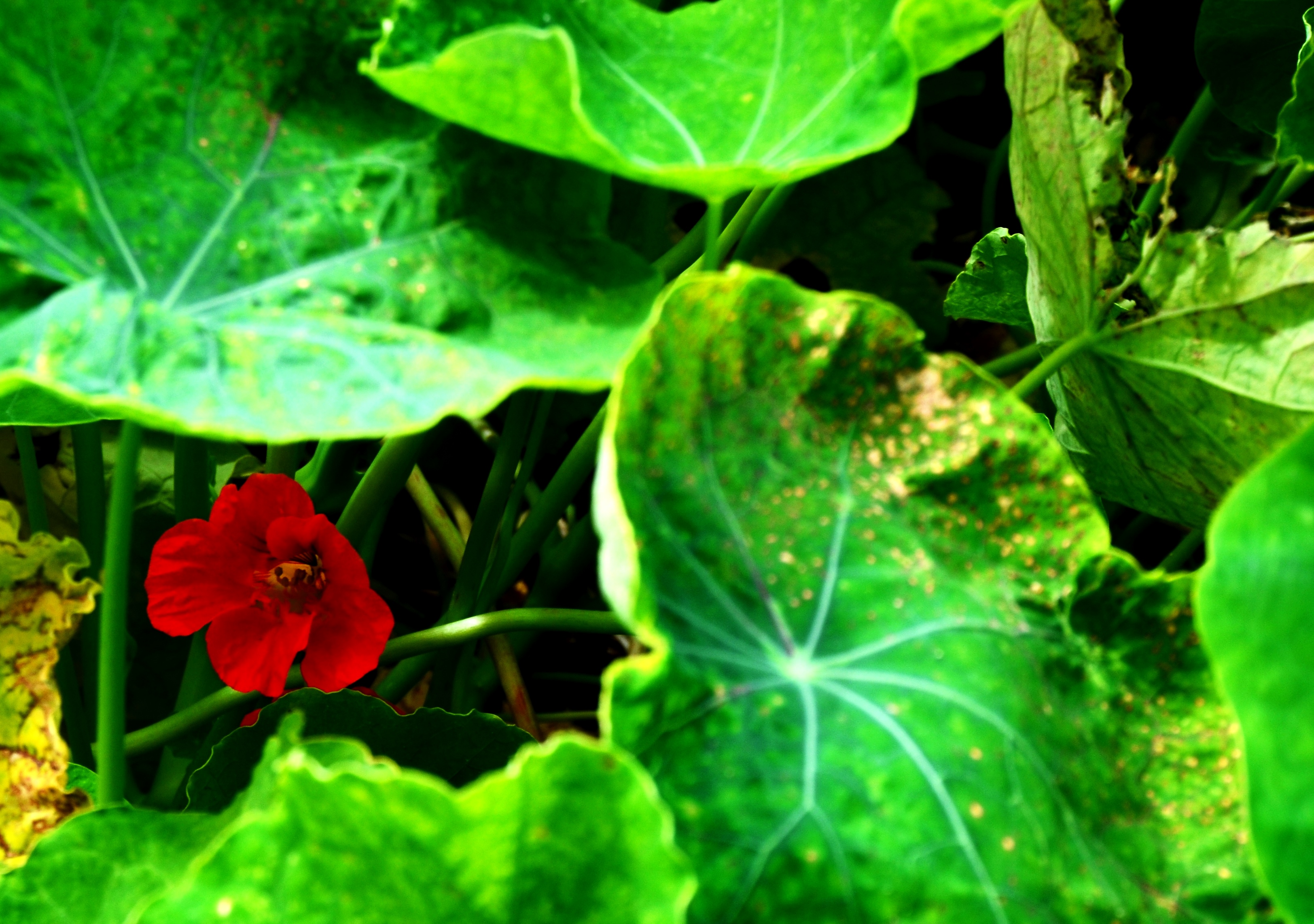 Amid the aging, giant nasturtium leaves in my front yard there is a new bloom, the first of the season. Since the nasturtium is a drought tolerant plant once established, this showy flower may be mainstay of landscaping this year in parts of California. I harvested hundreds of seeds last year and plan to sow many of them tomorrow. Doesn’t get more exciting that this…oh, yes it does, thankfully.