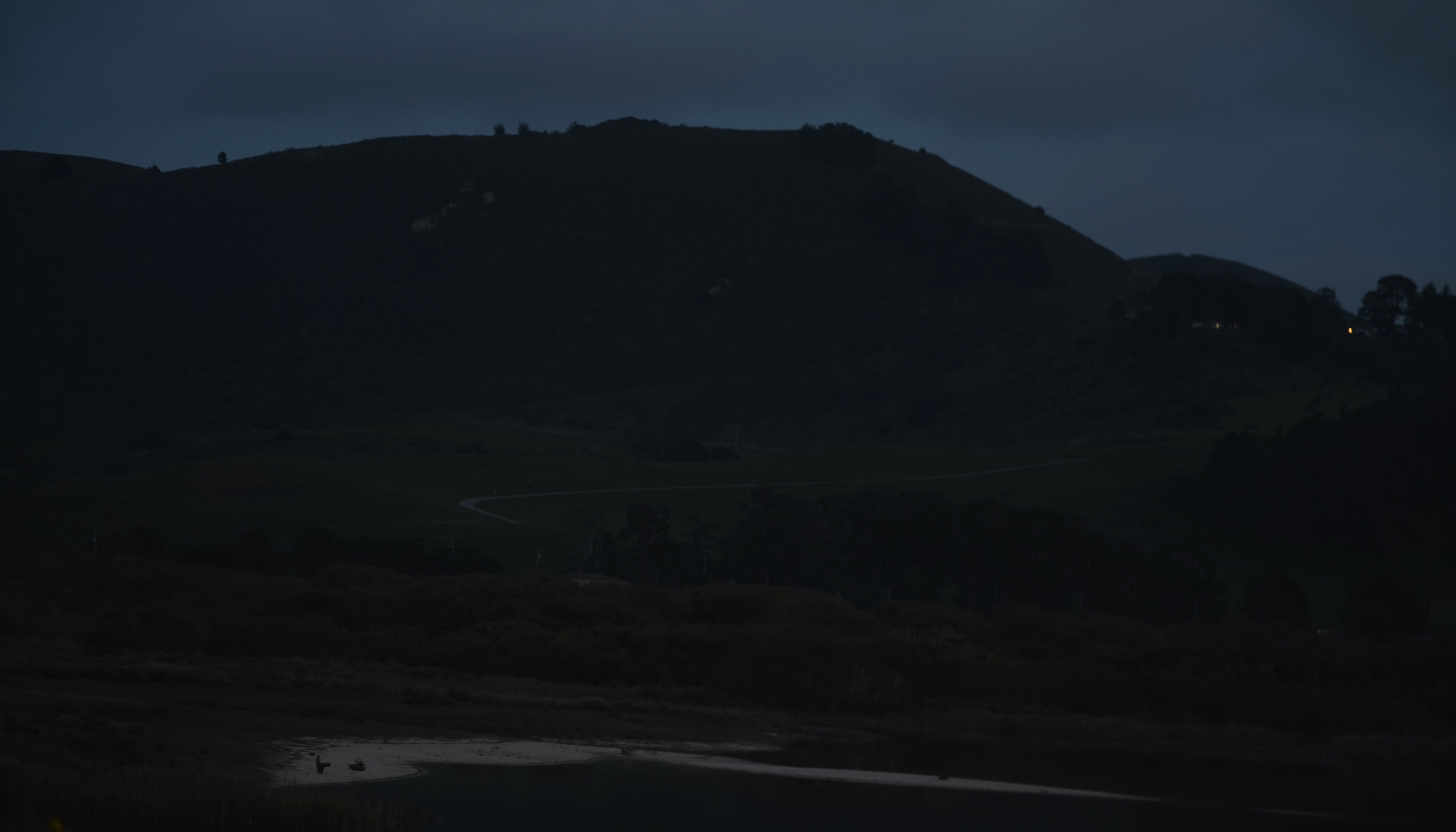 Went out at dusk yesterday to try some low light shots around Carmel Point. First, there is a full moon tomorrow morning, so I got a head start when the moon showed itself briefly before being swallowed up by clouds.