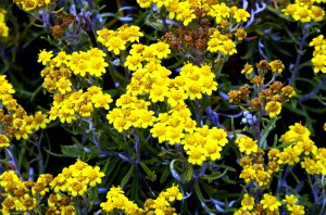 Despite the California drought, there is color between the boulders on the coastal hillsides of Point Lobos.