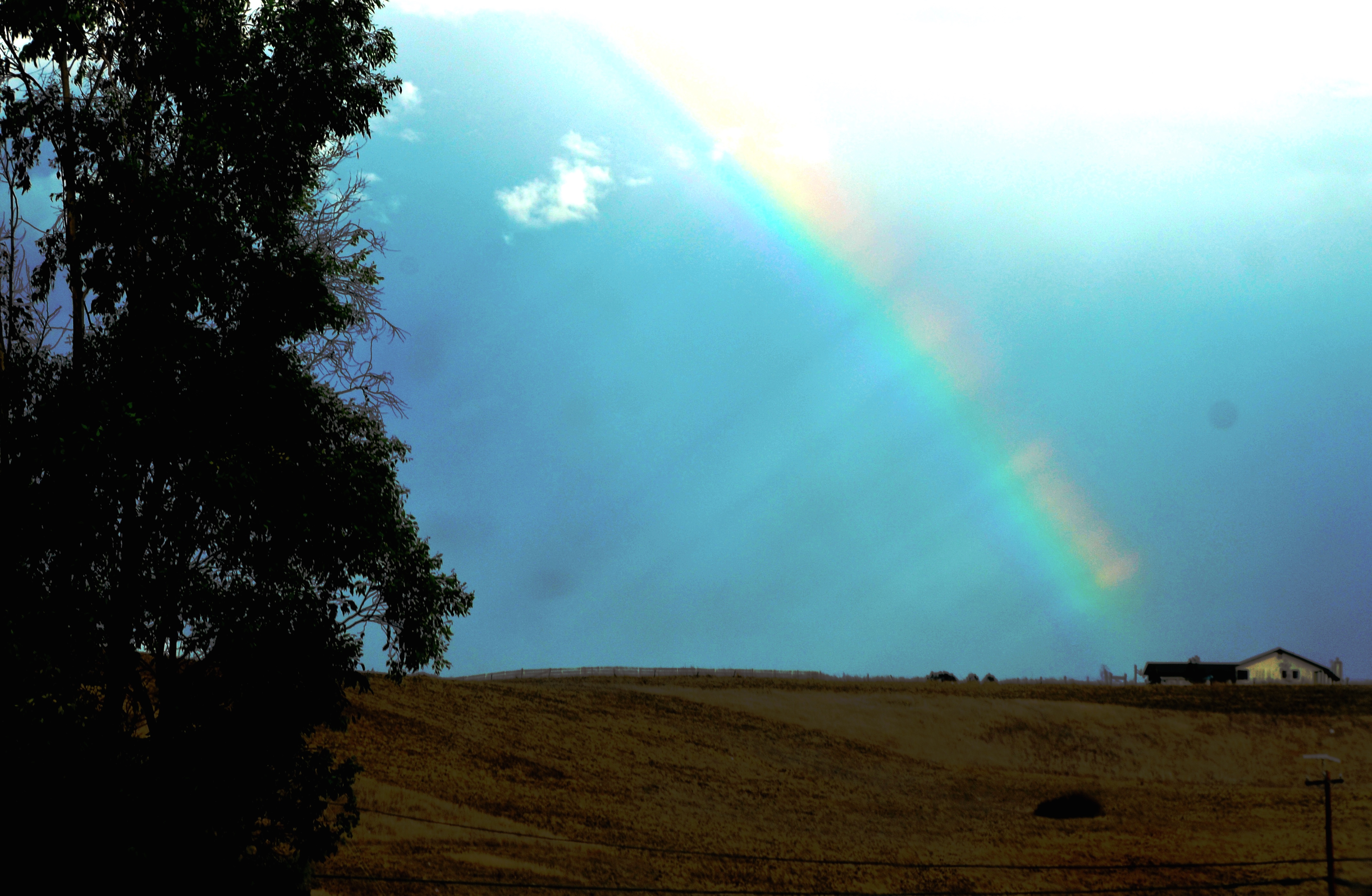 A trace of rain this week in California’s Central Valley produced a “half rainbow” over a Hollister farmhouse. I was stopped at a traffic light when I took this shot.