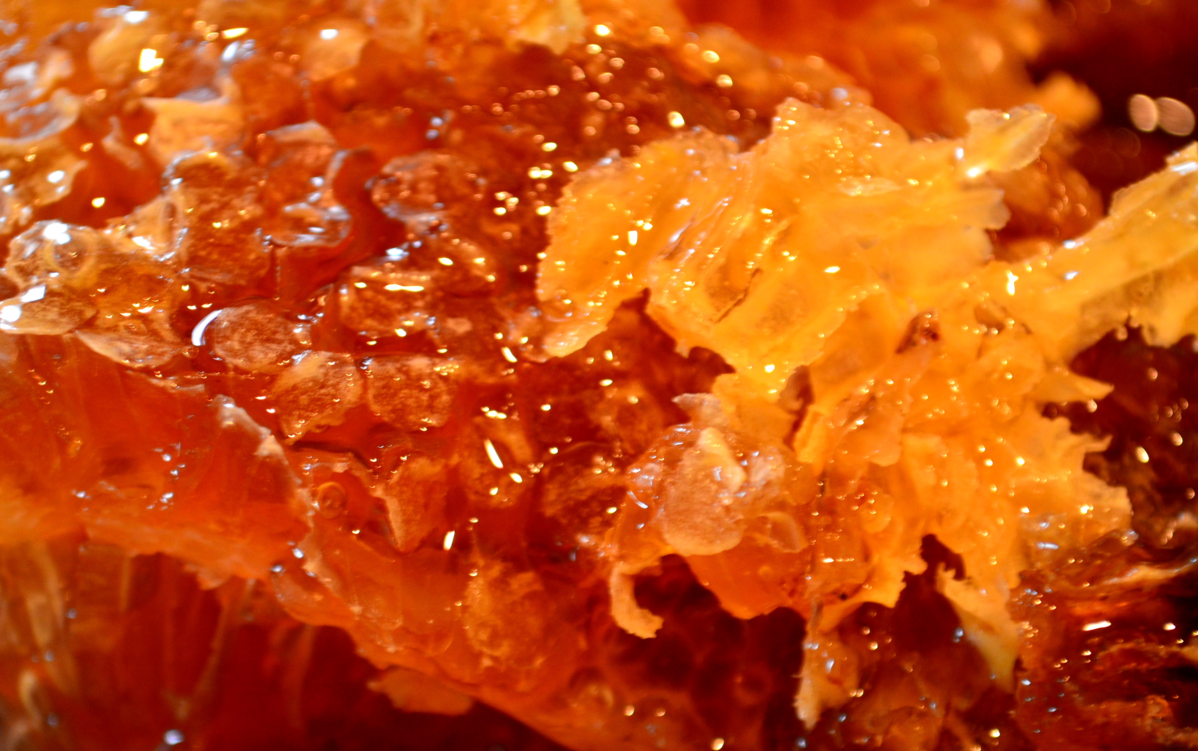 In these times of terrorism, extreme weather and raging forest fires, there is honey. This golden blob is from one frame harvested a few days ago. We use everything from the comb–nothing gets thrown out, in the spirit of the bees.