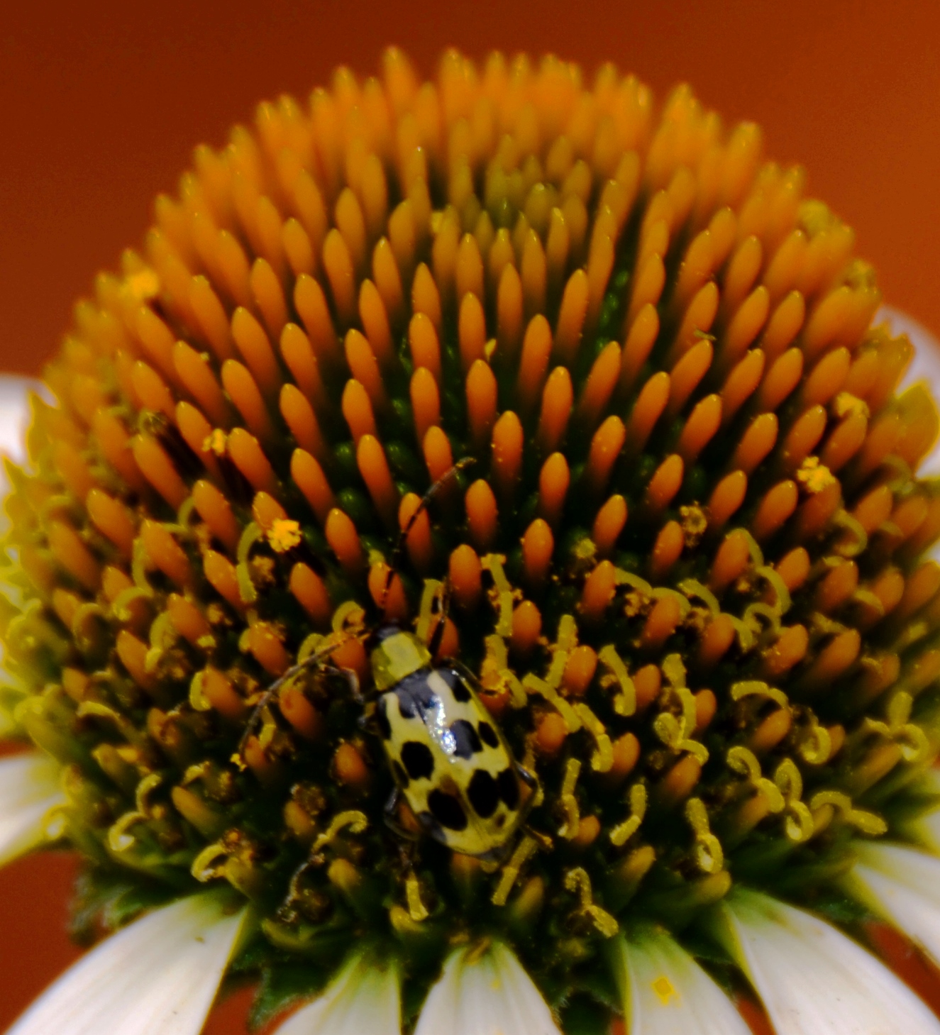 I have two raised beds by my beehives, each filled with flowers loved by honey bees. But other insects love them as well. Don’t know what this ladybug-like insect is, but it was all over this flower yesterday.