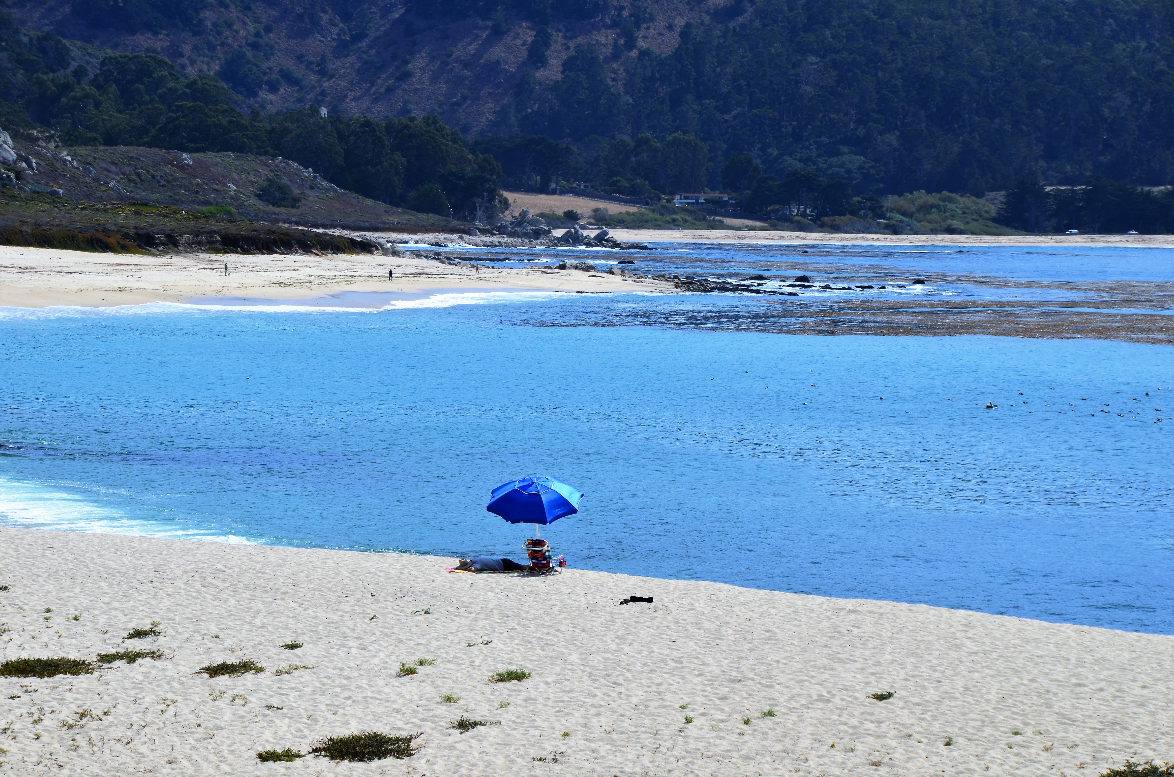 The nearest beach to our house is picture-postcard perfect. But, the tides are deadly–several drownings last year. So, this beach goer is playing it safe.
