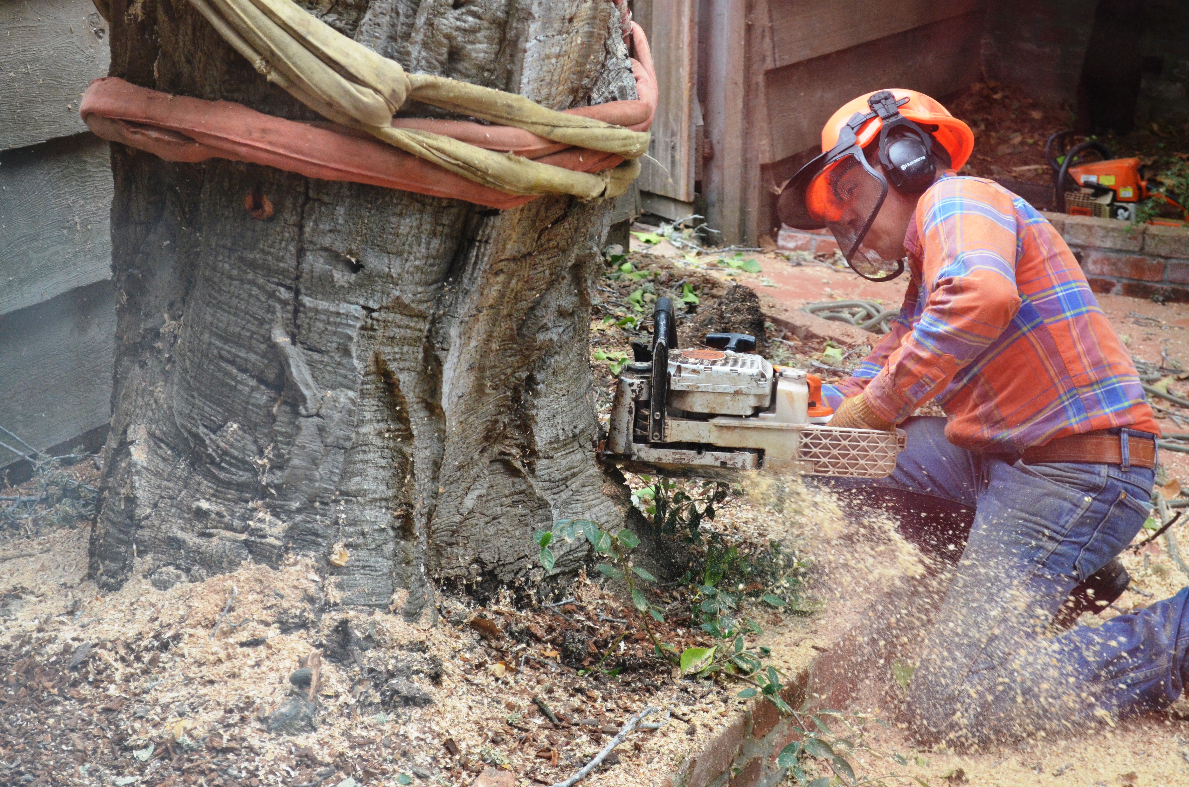 I think “careful” applies to the challenge of cutting a giant diseased, backyard oak to the ground, then transporting “the parts” by crane over the top of a house to the street. I’m glad the guys at Iverson’s were very careful.