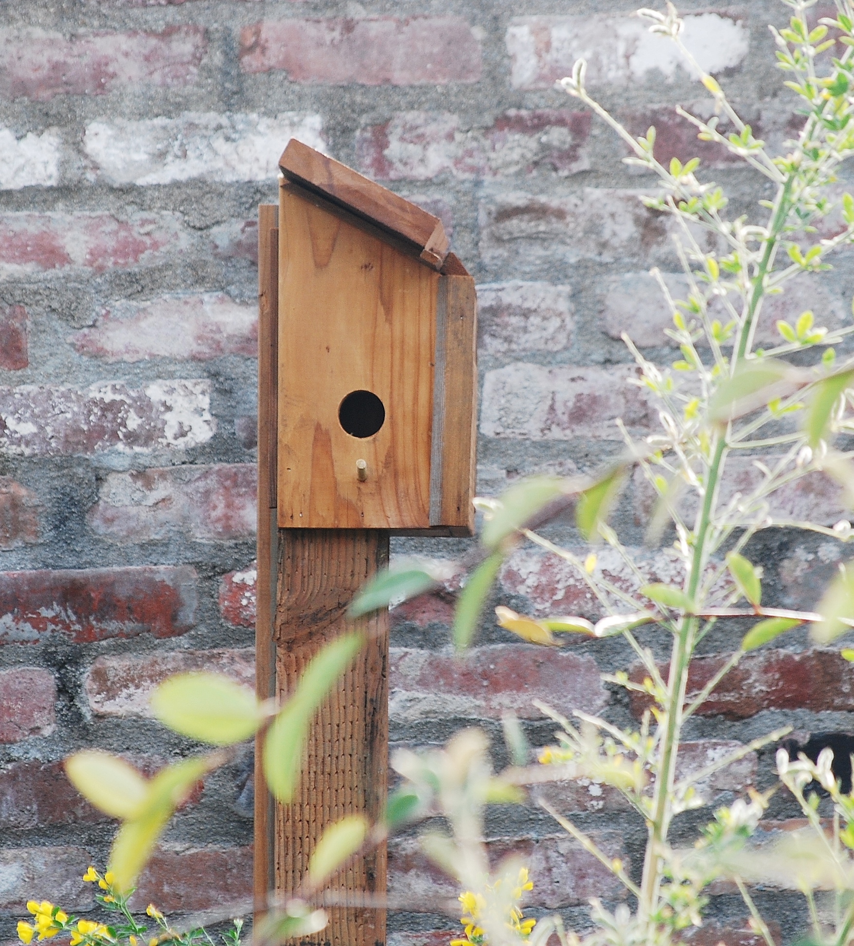 I put up an artisan birdhouse yesterday. This high rise unit is more than eight feet above the ground with spectacular views of brush filled with berries all year. Occupant must get along with rabbits and quail. Rent is free. Here are other key features: