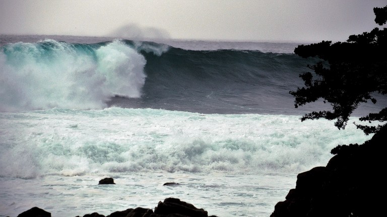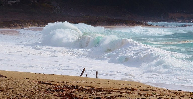 Yesterday was the first day of a two-day storm on the California Coast. In Monterey County high tides covered entire beaches as fast rolling waves pounded the coast. This afternoon the tides will be even higher. These photos capture the power of the ocean. For a time it looked as though the cliffs overlooking the Pacific Ocean were being bombed, the white explosions falling just short of their target.