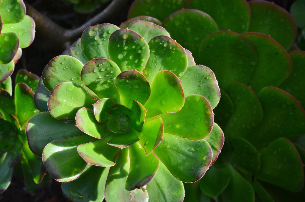 When l worked full-time, I didn’t noticed the morning raindrops in sunlight after the skies had cleared–almost sounds poetic. My focus was on getting to the job via a car. The wipers took care of the wet residue. But those days are gone and, they are not missed. After yesterday’s downpour I took a brief inventory, as shown above.