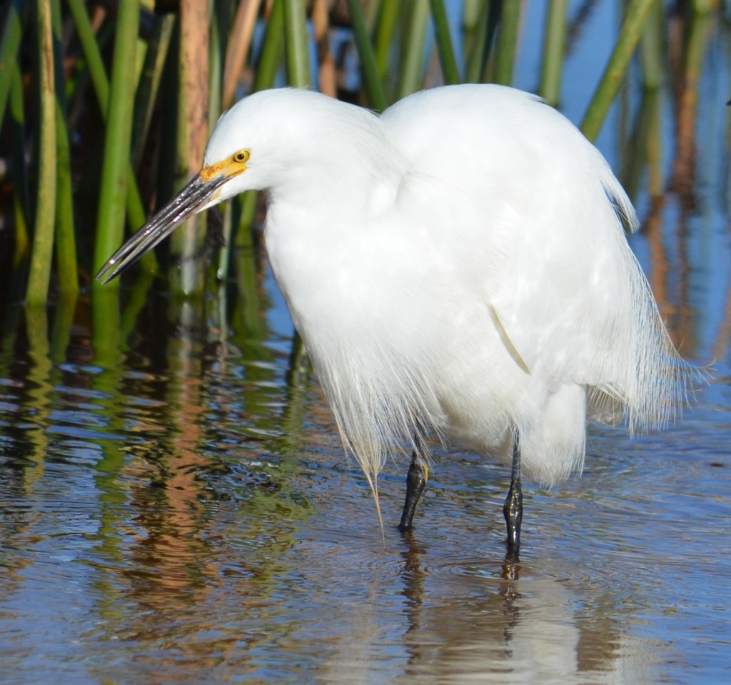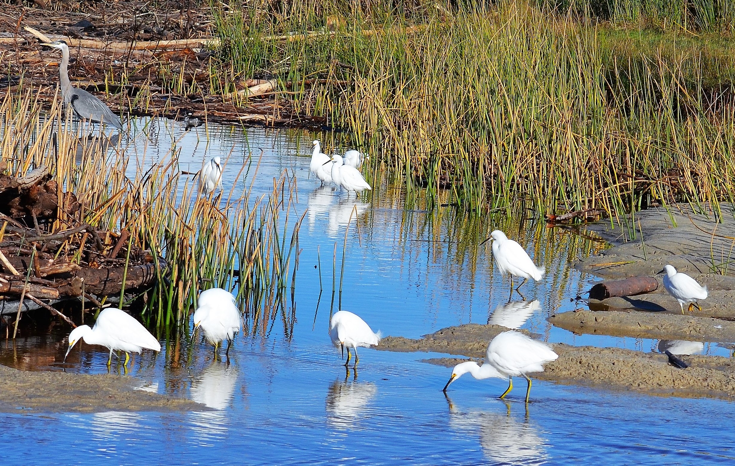 The Carmel River Lagoon was awash yesterday with snowy egrets hunting for food now that the high wind rain storms have passed.