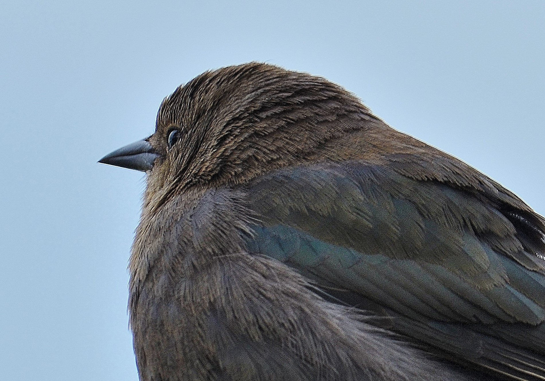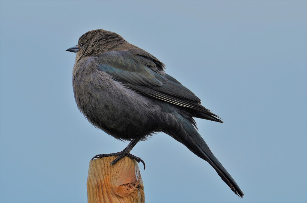 I was struck by how this bird was perched calmly on a pole at Carmel Beach and did not move when I approached. Rather than fly away, it posed, chest out. This small bird is black in the shade but with a bluish cast to it in the sun. My bird ID app says it’s a Brewer’s Blackbird, a common species around here.