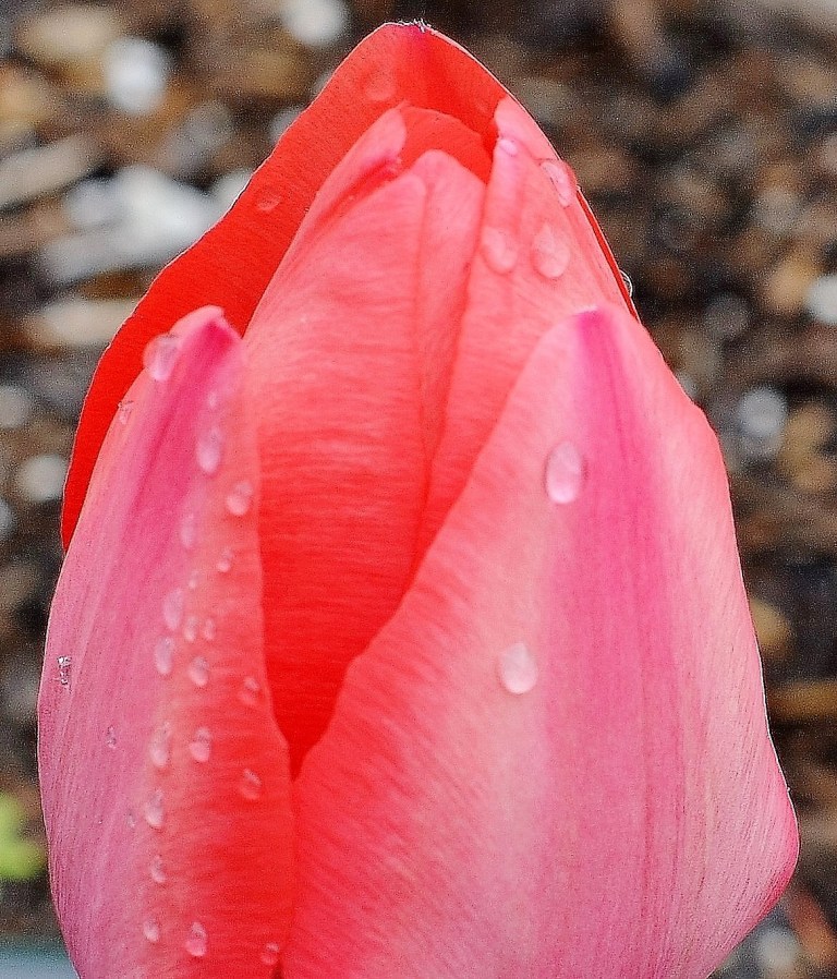 I am posting this as the rain continues. Sunshine is rare these days. I planted a tulip bulb last December–it was a “favor” from my granddaughter’s third birthday party. This shot taken a few days ago appears to capture tears of this tulip attempting to open in unfriendly weather. It will open today. Hope is good.