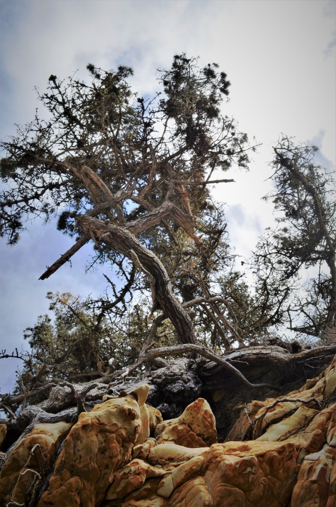 Visitors look at the Pacific Ocean more than the terrain at Big Sur. The cliffs, in particular, are worthy of close inspection. Note the tree root growing out of the rocks.