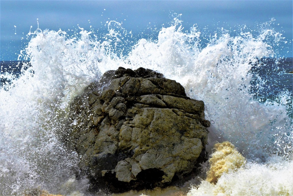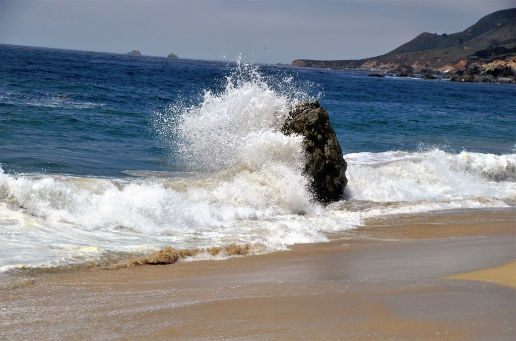 There is a giant boulder in the middle of Garrapata State Beach that gets whacked by waves at high tide. At these times it is best to look, but don’t touch.