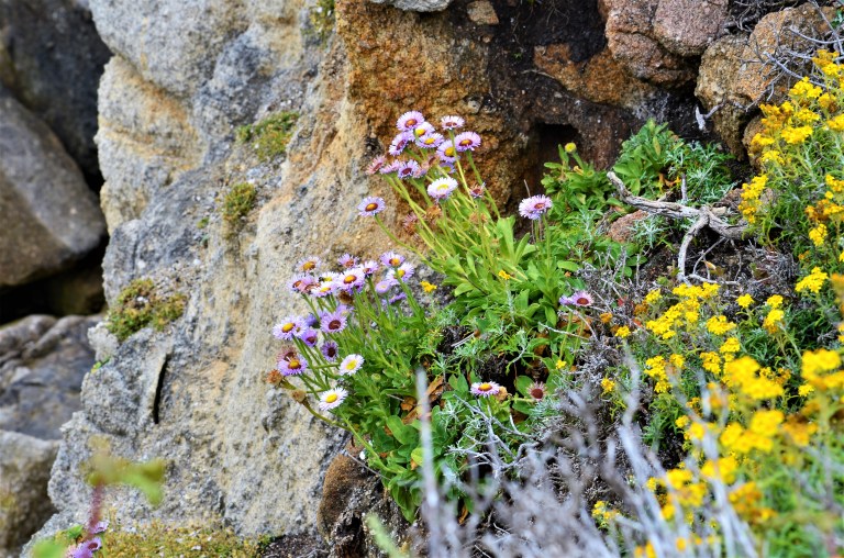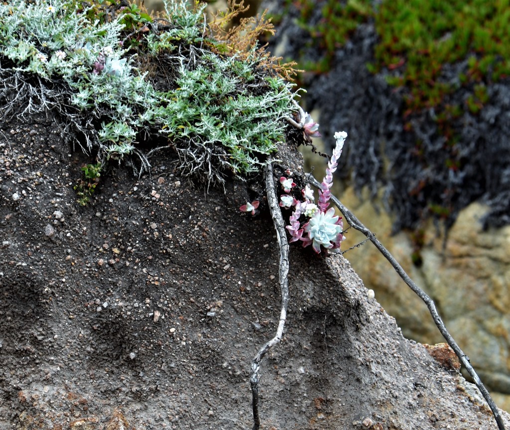 The cliffs of Point Lobos are randomly adorned with brightly colored flowers. I find nature’s design as intriguing as the fact that these plants are growing out of the rocks. Photos taken yesterday.