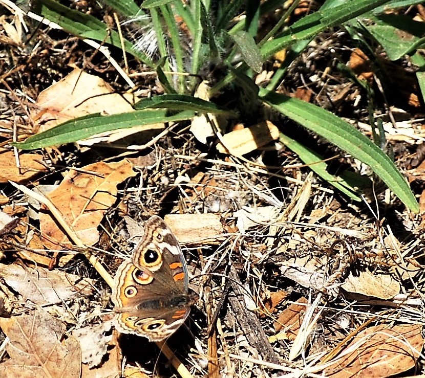I was 35 miles inland, walking on a country road with my camera, bemoaning the fact that there were no butterflies about. I was close to giving up when I spotted some movement, perhaps, an alligator lizard. Then the beauty of a buckeye butterfly unfolded. With its wings closed, the buckeye exhibits excellent camouflage, but when they’re opened…not so much.