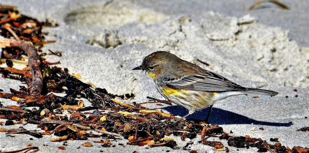Townsend warblers are a rarity on the beach, but they do check out trails of kelp and driftwood after high tide, well away from the surf where sandpipers patrol. Monterey County is home to 489 species of birds, meaning the tiny warbler shares beach space with pelicans and great white egrets.