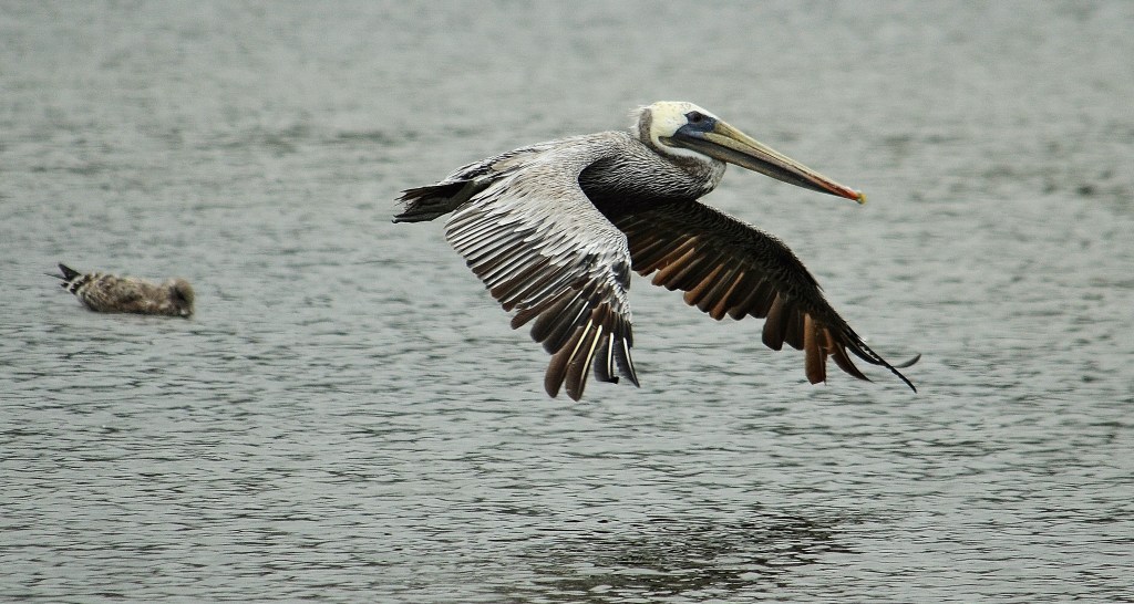 This week I spent two mornings photographing brown pelicans flying over Carmel River State Beach. This type of shooting challenges my use of Nikon’s auto focus in sports mode. Sure, I capture the pelicans in flight, but the sharpness isn’t there. But after enough tries, I got some keepers. Practice, practice.