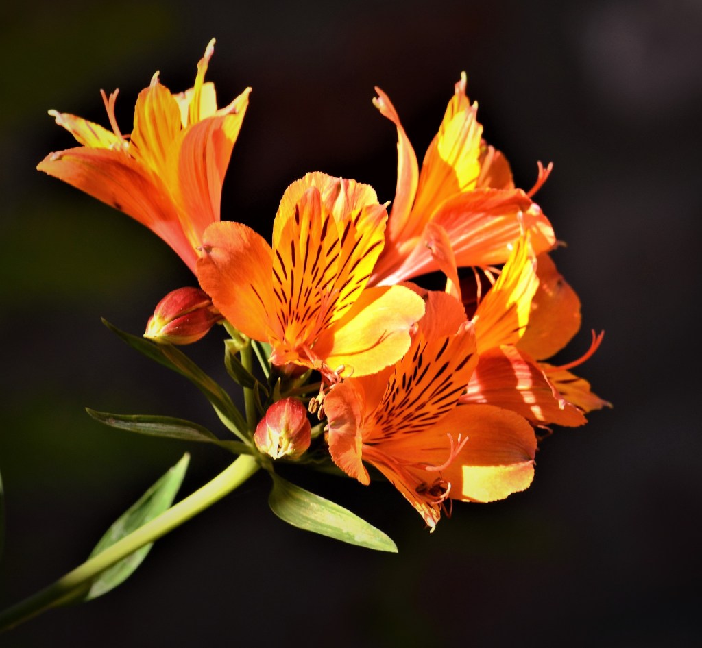 Hey, bloggers. Sometimes my creative tank is nearly empty. I struggle for something new, but find myself bouncing off the same old stuff that, in itself, isn’t bad, it simply isn’t…new. I’ve posted shots of Peruvian lilies before. This photo was taken a few days ago on a day where there plenty of honey bees about, but few butterflies, my usual subject. I did have a doe greet me in the driveway at daybreak. She looked at me with disdain, then pranced down the middle of the street towards an area that until last year was overgrown with vegetation, but now supports the frame for a new house. Deer used to graze there, but no more. She’s going to be disappointed as am I.