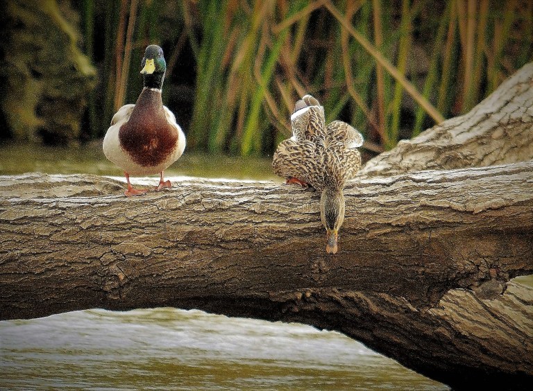 As a perch for two mallards.