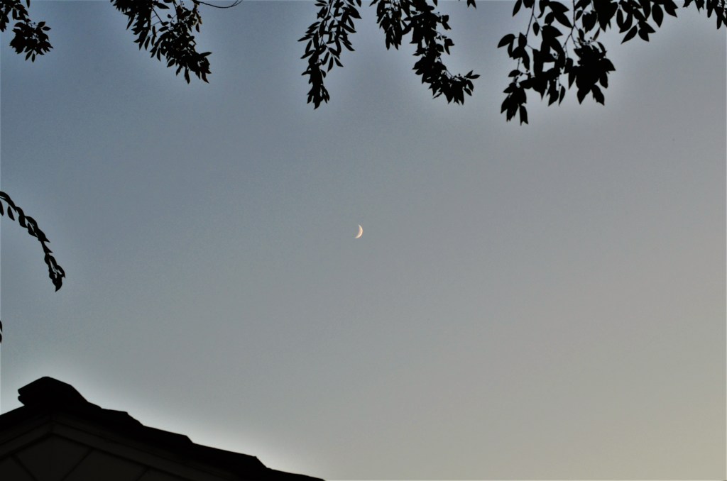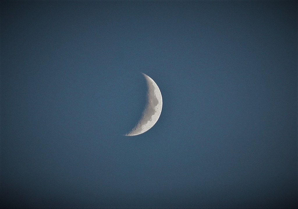 Yesterday evening I took two hand-held shots of the moon from our front porch. I immediately looked at them, realizing I’d do better with a tripod which, of course, was in the car trunk…where it usually is in out of sight, out of mind mode. Then the dogs started barking–they wanted to eat. So, another Ansel Adams moment slipped by.