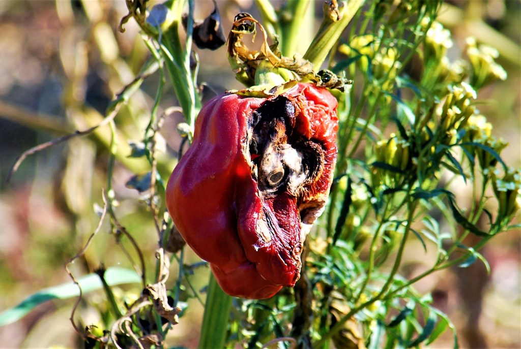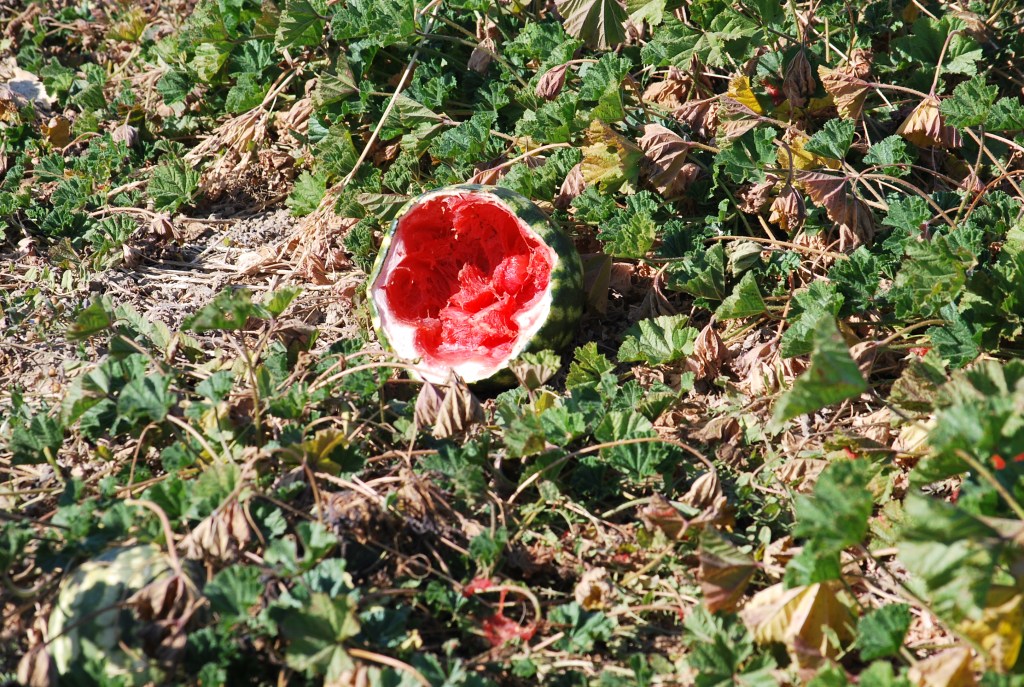 Urban farmers had a big harvest with tomatoes, peppers, squash, sunflowers and watermelons, at least that was what I saw left in a field by a busy street in West Sacramento.