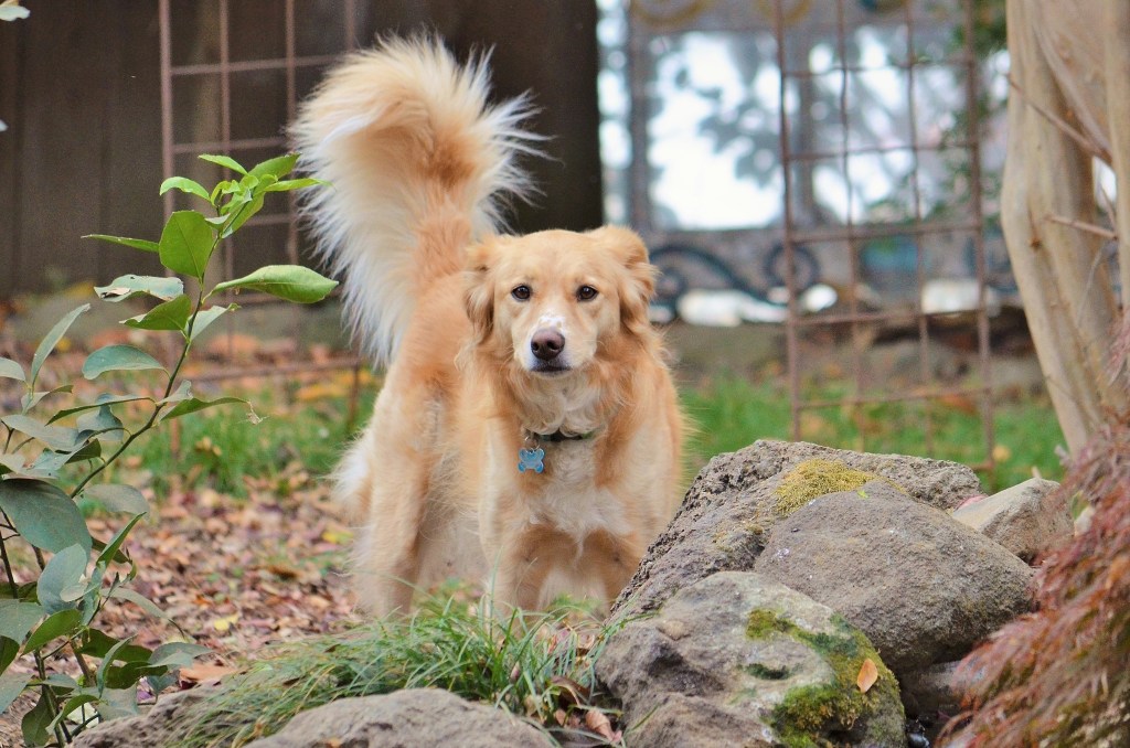 Molly is a border collie mix with a job: keep critters out of the backyard. Captured her intensity yesterday. Not shown is her sweetness, for she is one very loving dog.