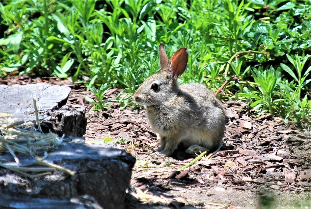In June of this year I started taking photos of wild rabbits living in our front yard. They loved eating Kenilworth ivy which we pulled from our backyard and placed on an oak stump. One day the rabbits shared the stump with a quail family that came by for a visit. Peace,