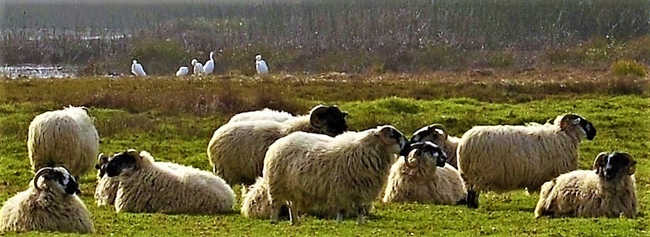 Sheep, egrets and the Carmel River Lagoon–a trifecta of calmness.