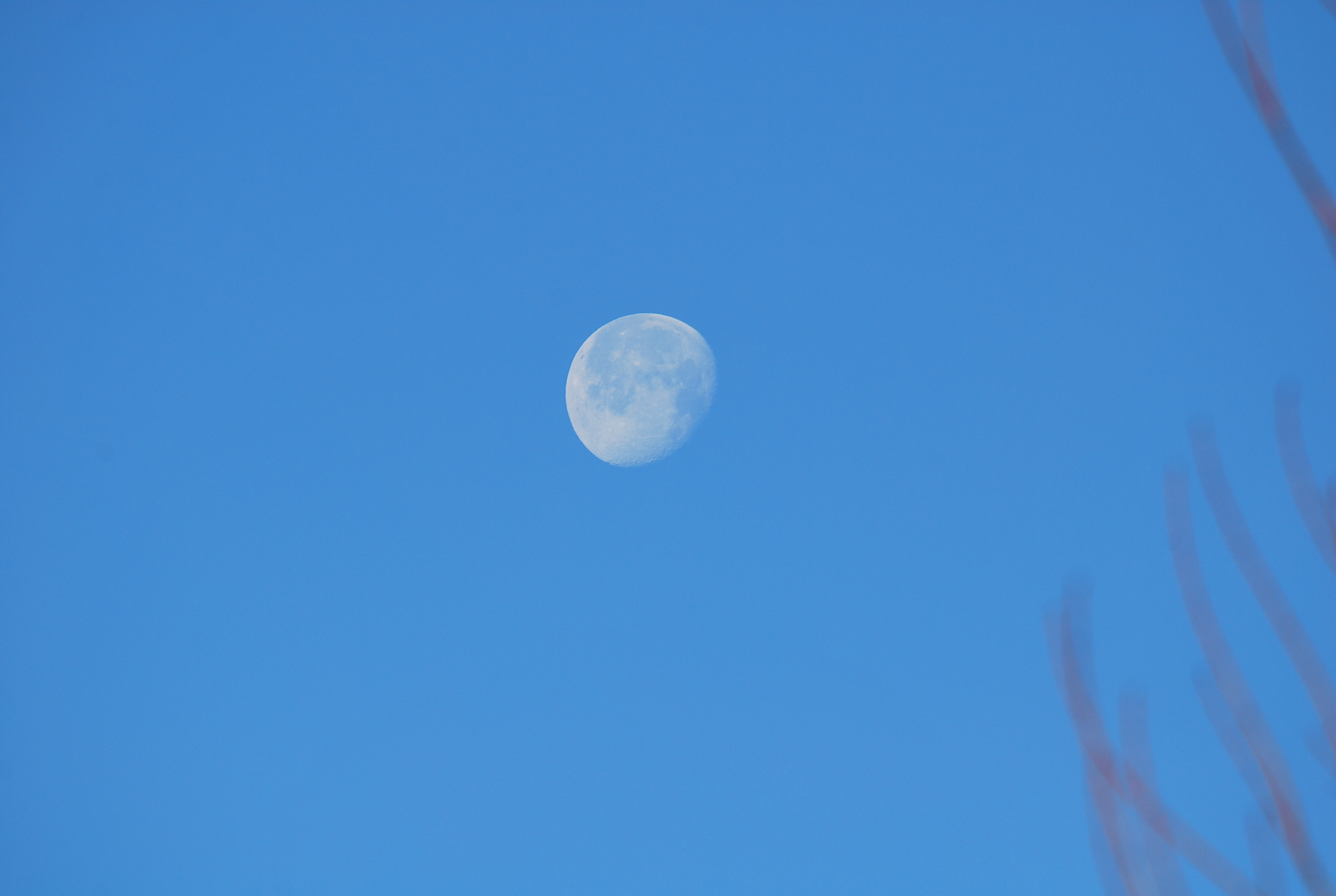 The sky was particularly bright and clear yesterday morning as was the moon. I took this hand held shot while gauging the amount of time it would take to set up a tripod for a longer exposure photograph. Then the dogs started to bark
