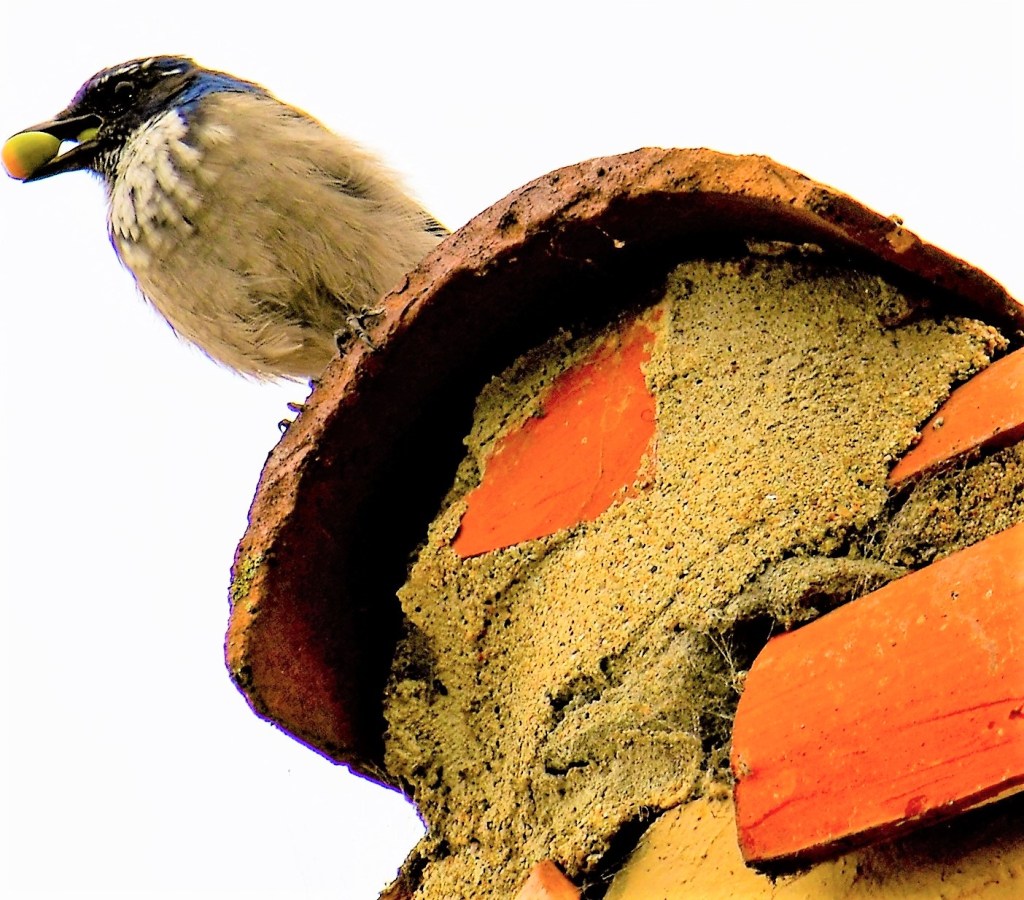 This scrub jay has an acorn in its beak atop the roof of the Carmel Mission. The bird appears so confident and proud to have a nut he won’t be able to crack.