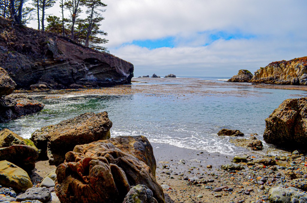 Along the coast at this time of year, cloud cover produces patches of blue sky with clouds usually winning the day. This shot was taken at Point Lobos near Whaler’s Cove