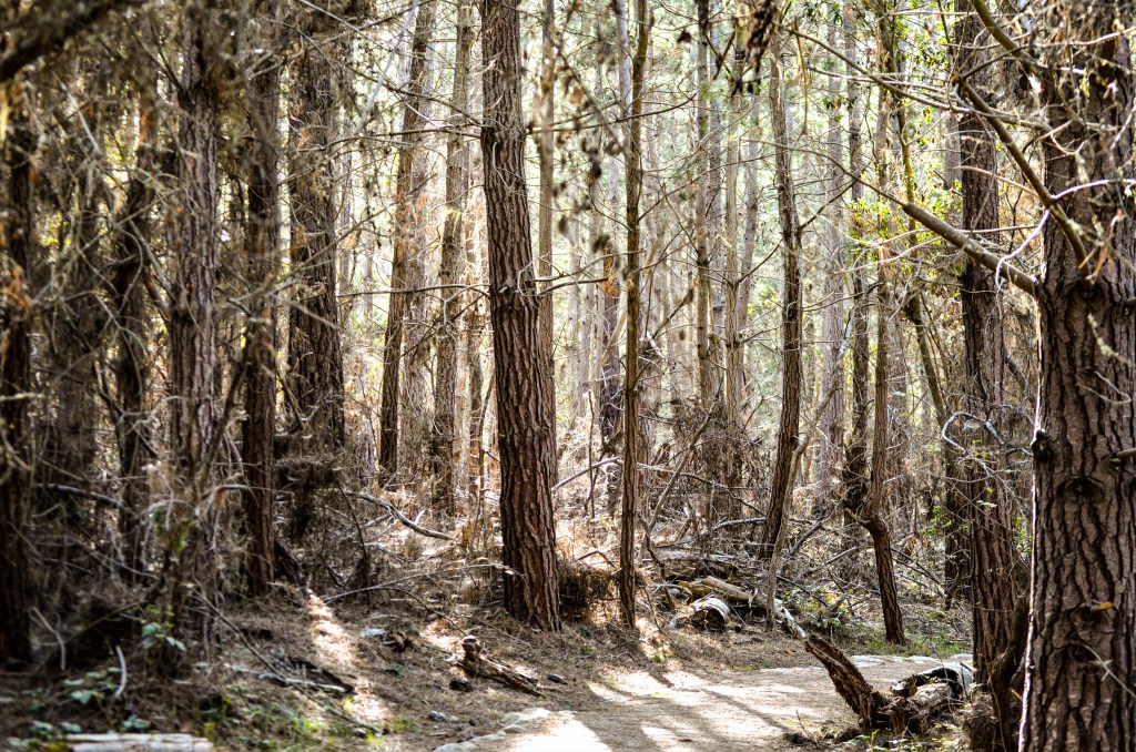 Drought, invasive pests, and high winds are a few of the dynamics that wear out a forest. I took this shot of the woods at Point Lobos in an attempt to capture the stress that trees are under. The light looks unhealthy to me.