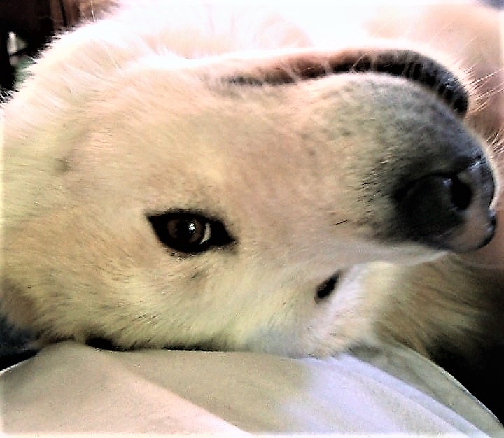 Throughout the day, regardless of how grim the new might be, I have dogs to lead me on with their adherence to routines, including play time. The levity pack leader is Teddy who, in the photo above, does her harp seal impression.
